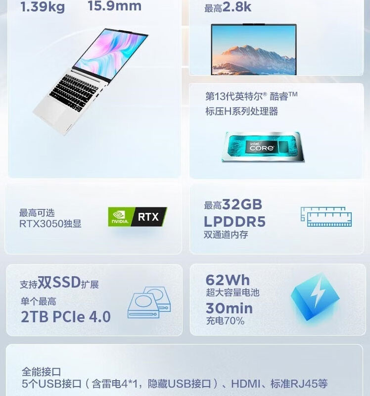 | 显示端口 | HDMI接口; Type-C; Thunderbolt (雷电) |