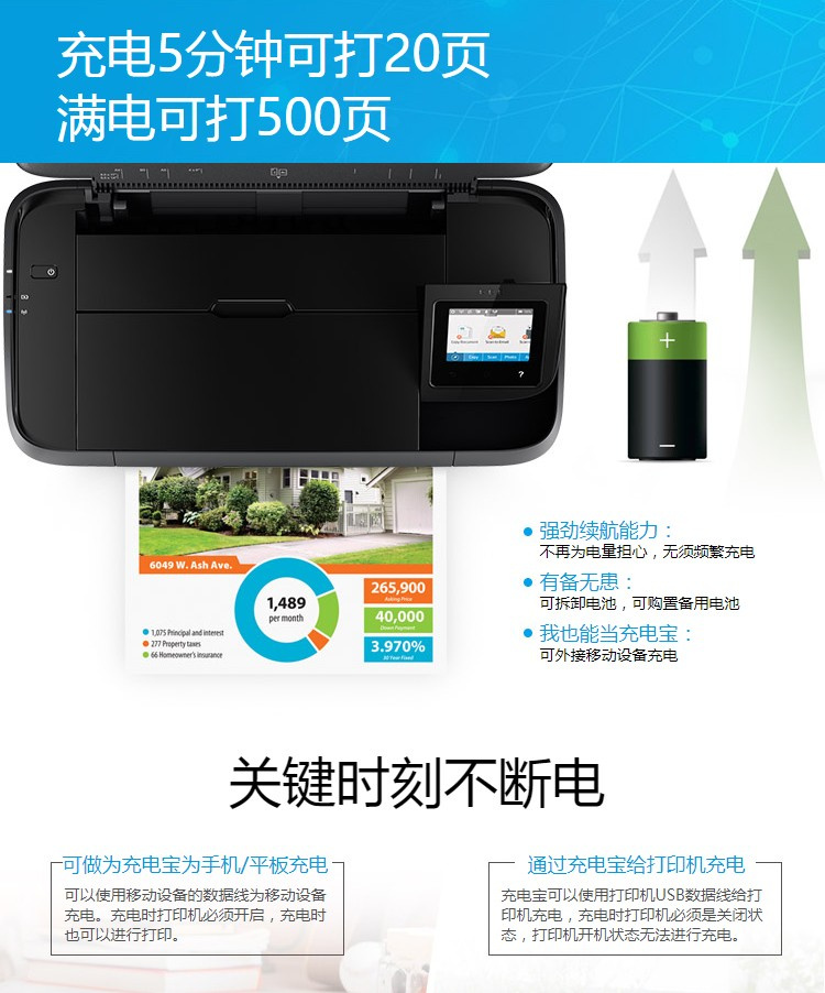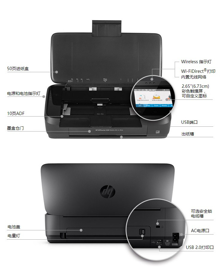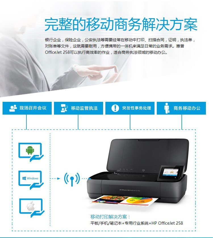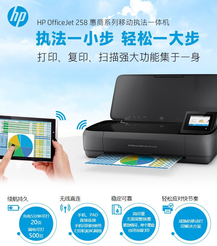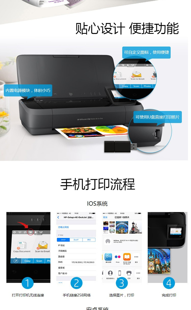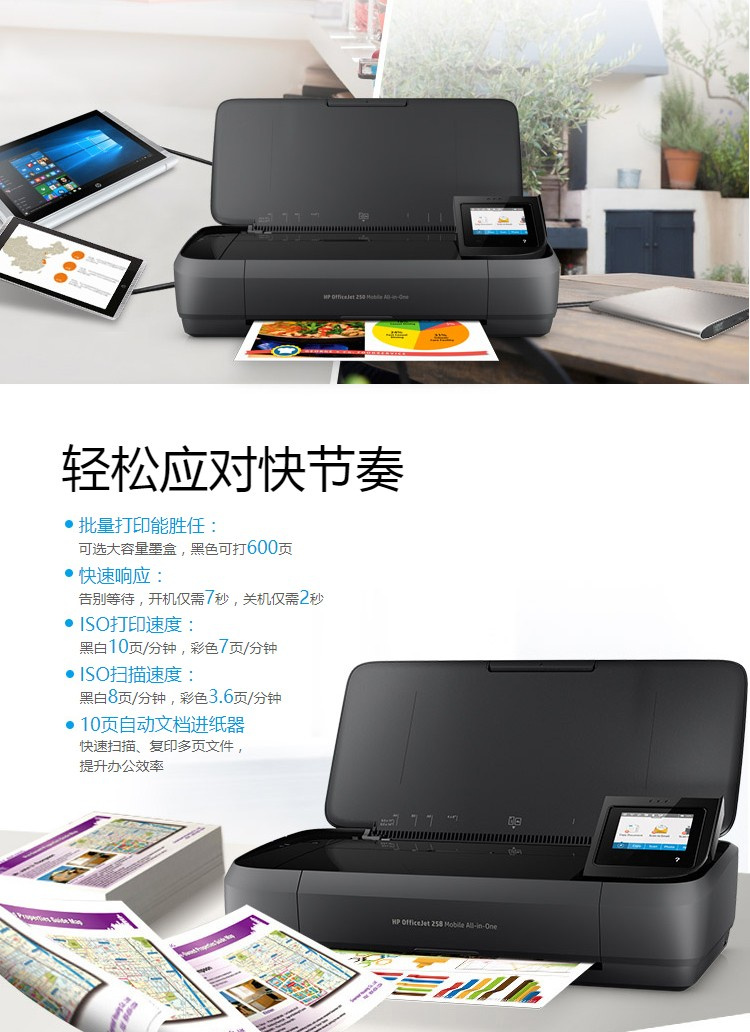 惠普 OJ258 便携式彩色喷墨打印机 无线打印
