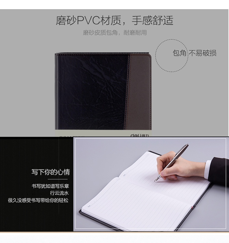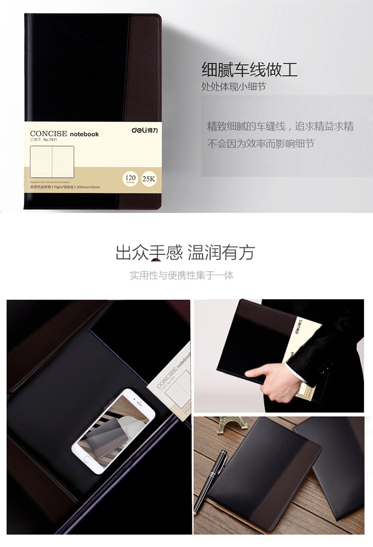 得力7911皮面笔记本(黑)-120页-25K(本)