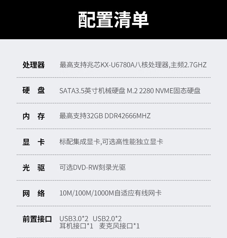 紫光 D3890 G2(兆芯KX-U6780A/2*8G/512G/独立显卡2G/键鼠/23.8 LCD)