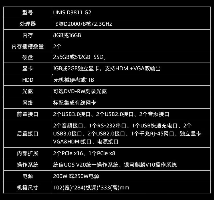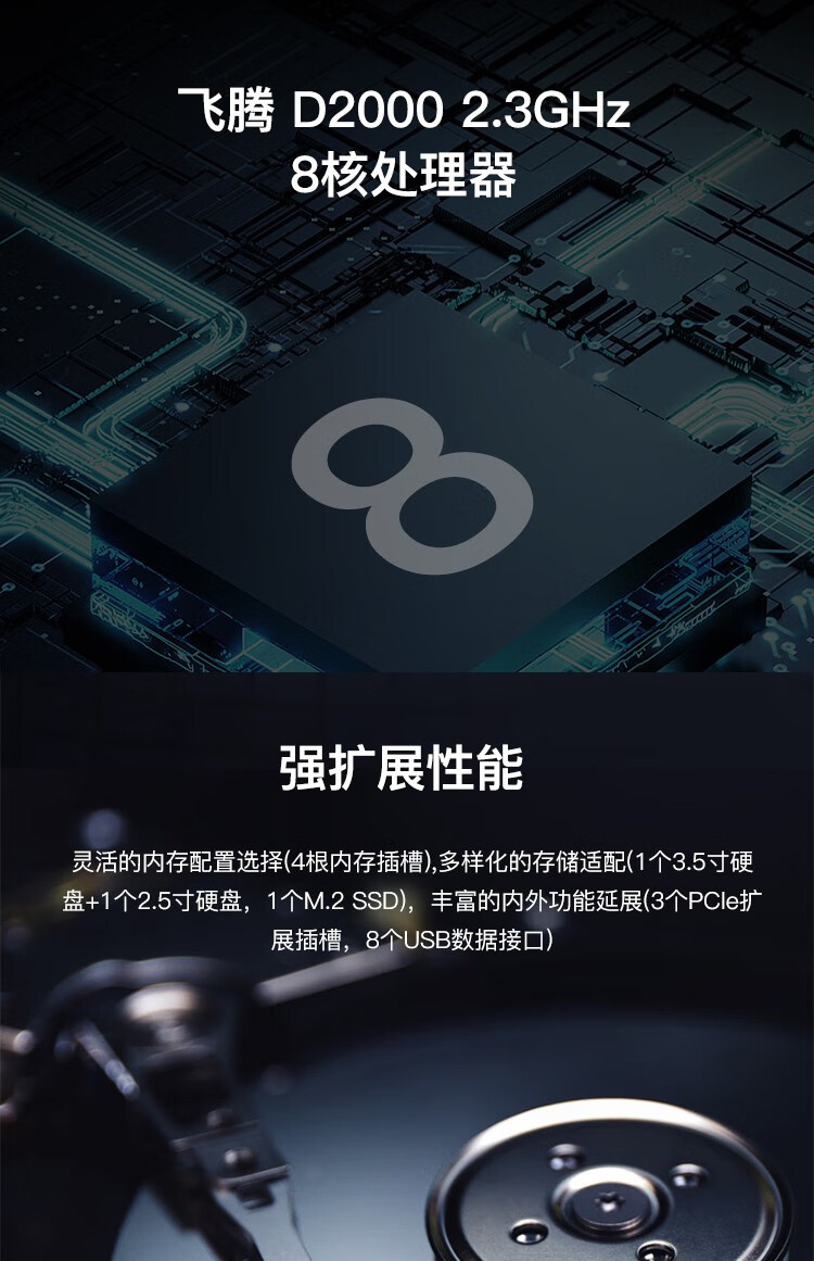 紫光 D3811 G2(飞腾D2000/8GB/512GB SSD/FH2 2G/DVD-RW/23.8 LCD/键鼠)