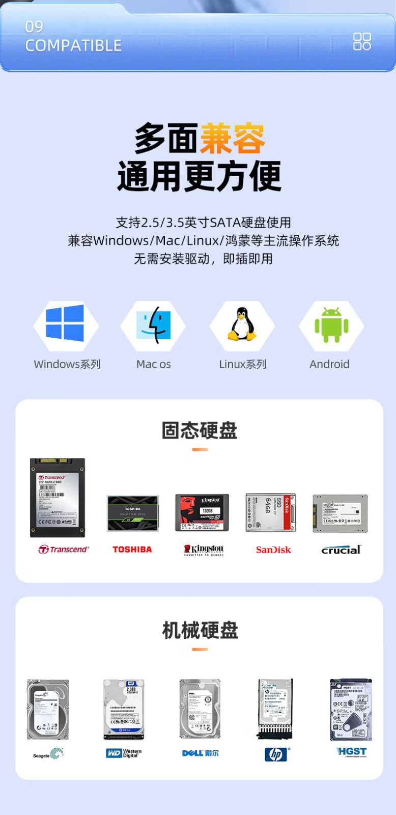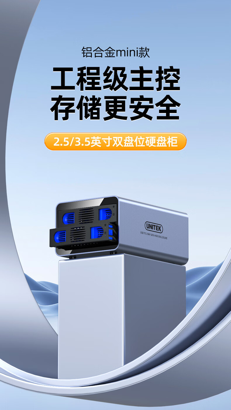 优越者硬盘柜双盘位全铝 2.5/3.5英寸USB3.0转SATA串口机械SSD固态移动硬盘柜电脑外置硬盘存储架S308A