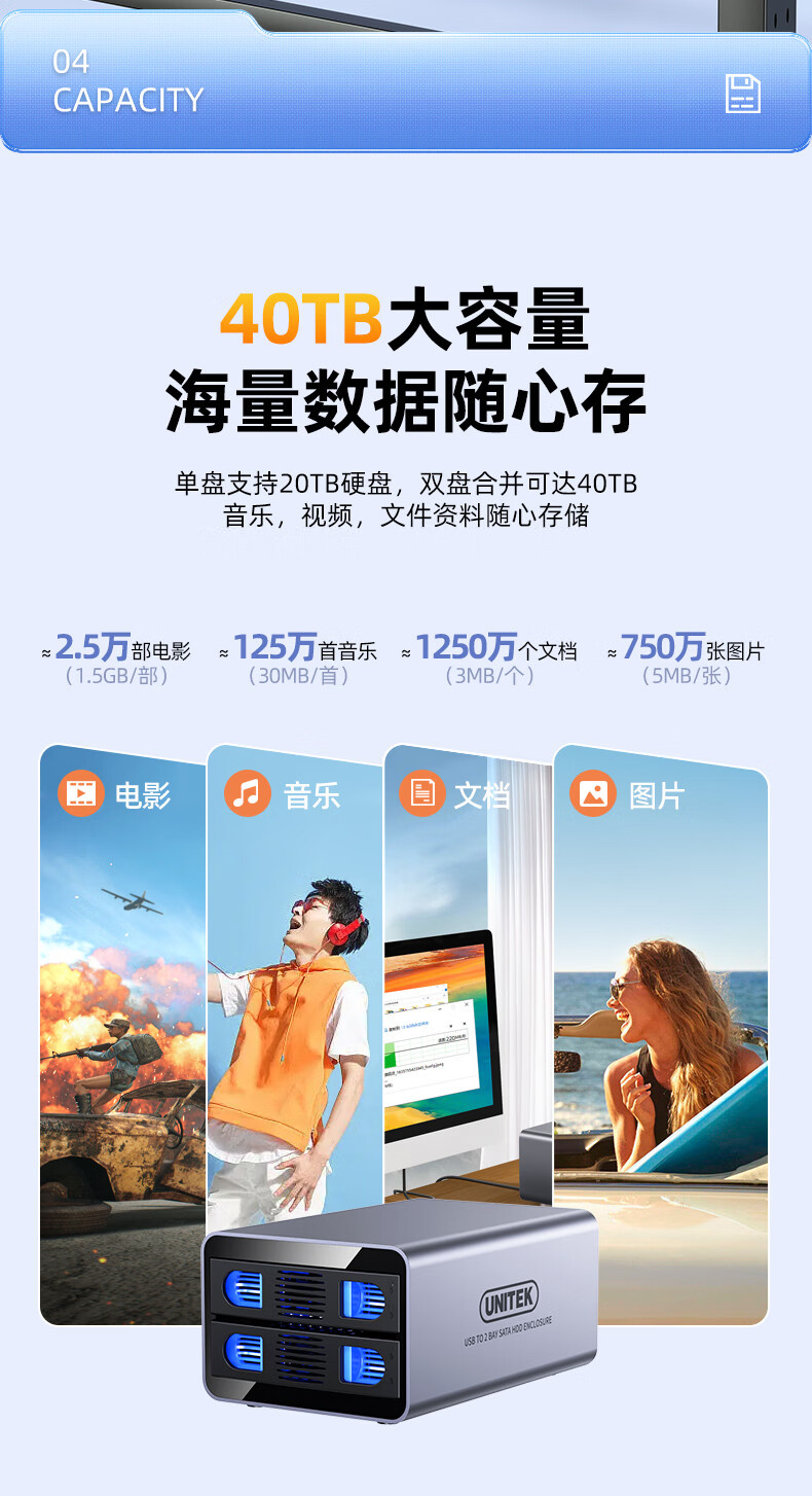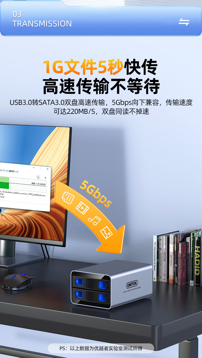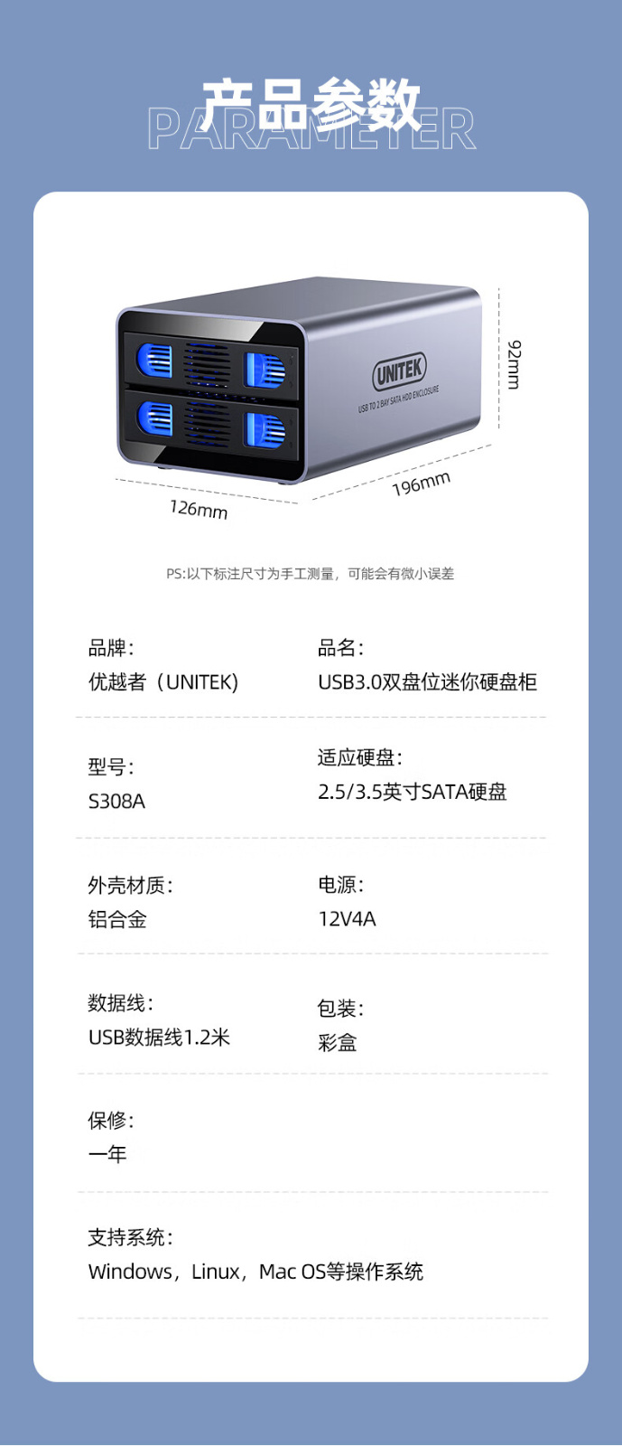 优越者 S308A USB3.0俩盘位硬盘柜,无RAID功能 80CM 存储