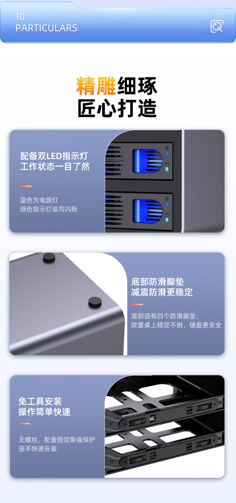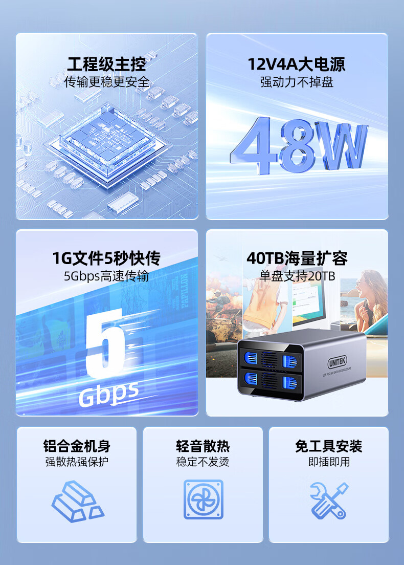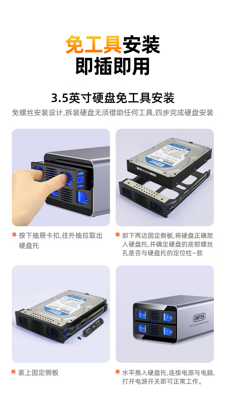 优越者 S308A USB3.0俩盘位硬盘柜,无RAID功能 80CM 存储