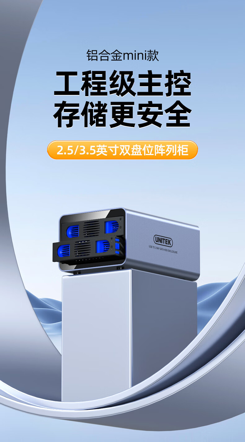优越者双盘位阵列柜RAID多盘位硬盘柜2.5/3.5英寸USB3.0转SATA串口电脑外接机械SSD固态磁盘存储架S308B