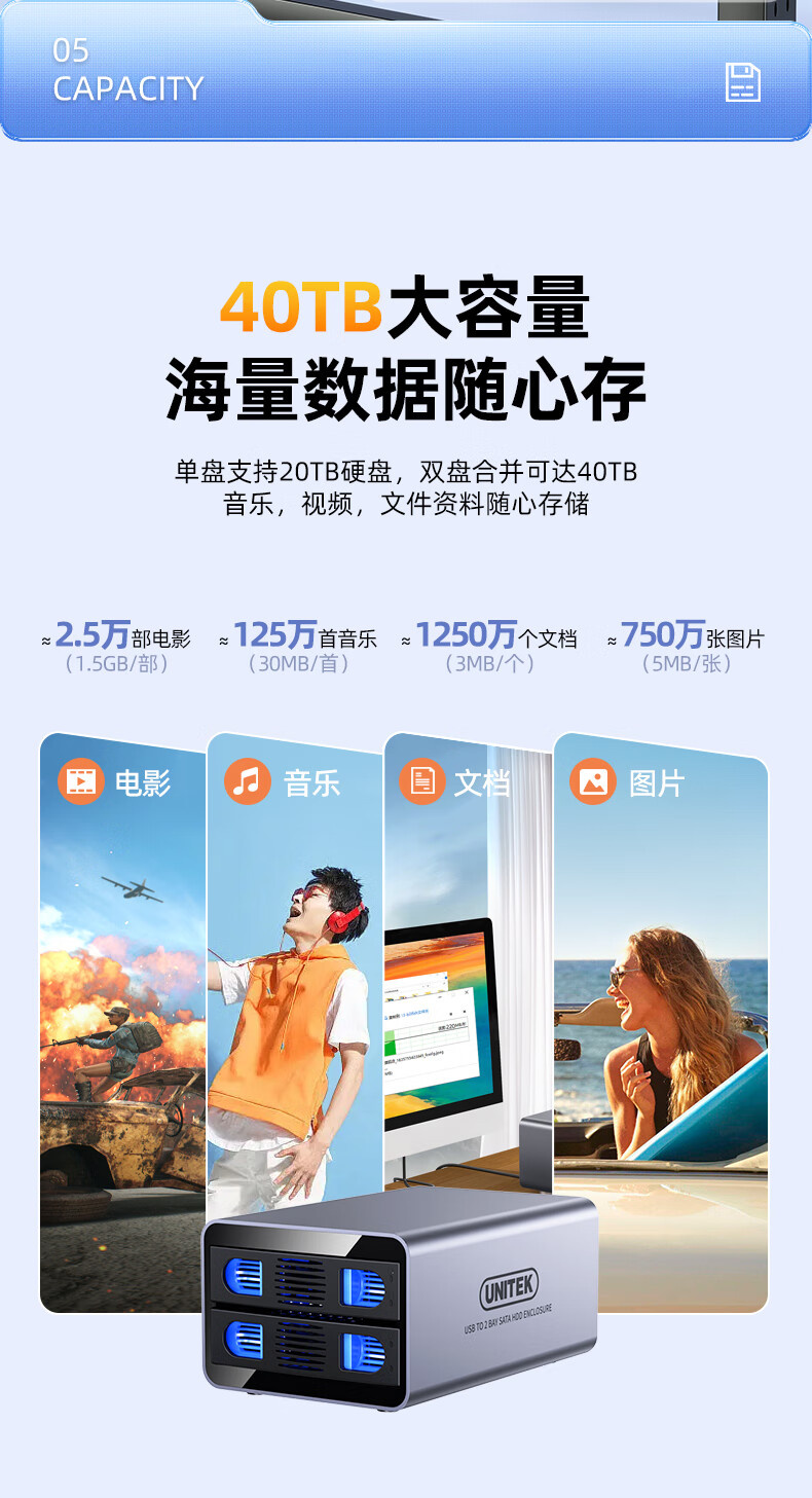 优越者 S308B USB3.0俩盘位硬盘柜,支持RAID功能 80CM 存储