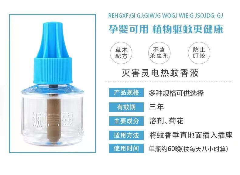 灭害灵蚊香液卧室补充装专用蚊子无香室内 电热蚊香液(无香型)1瓶+1器