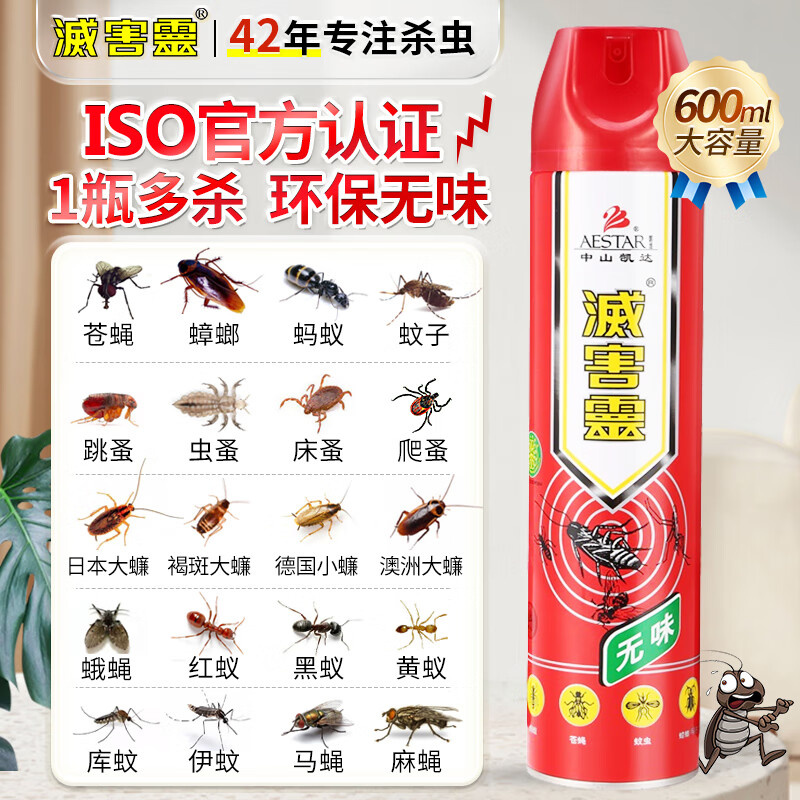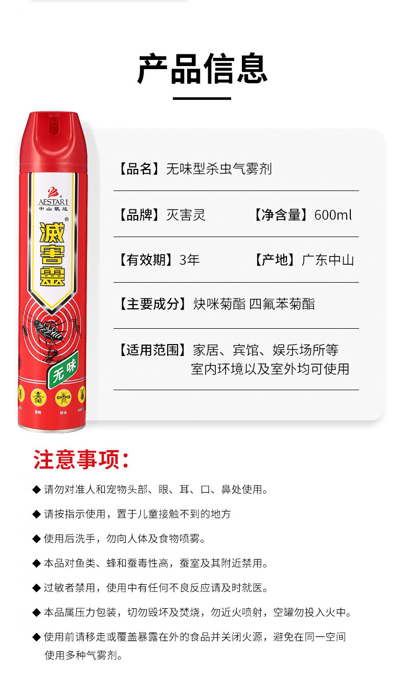 灭害灵无味杀虫剂水 气雾剂 灭蚊无香蟑螂药驱苍蝇蜈蚣百虫灵药剂600ml