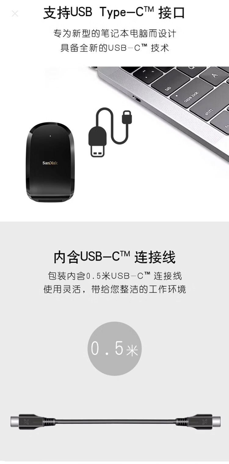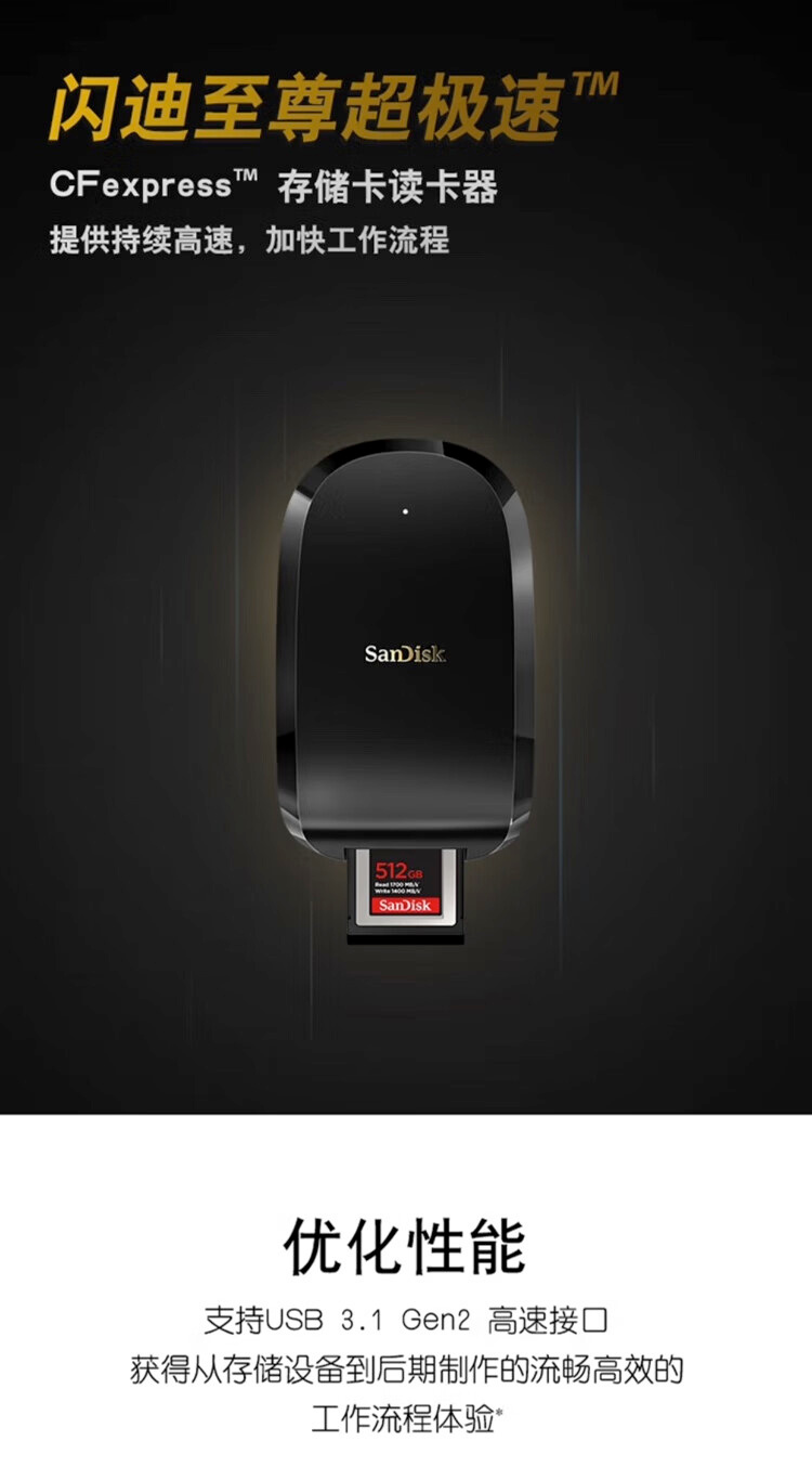 闪迪至尊超极速CFexpress存储卡 读卡器SDDR-F451 读速1250M