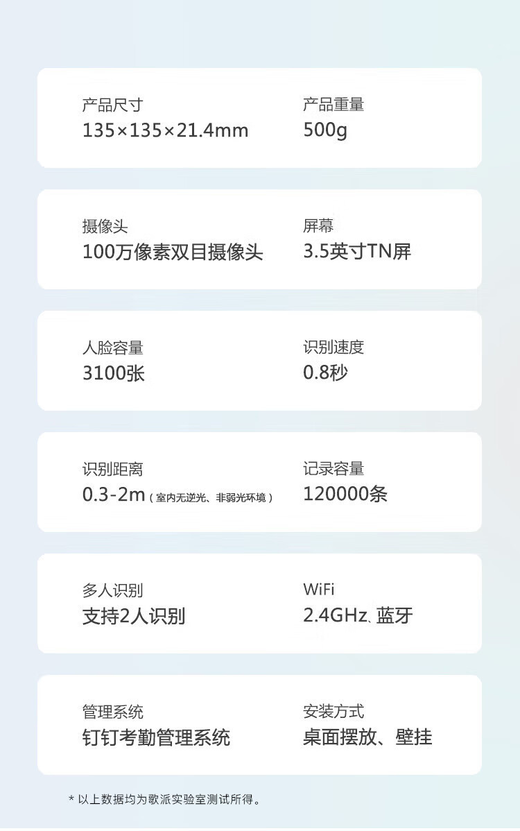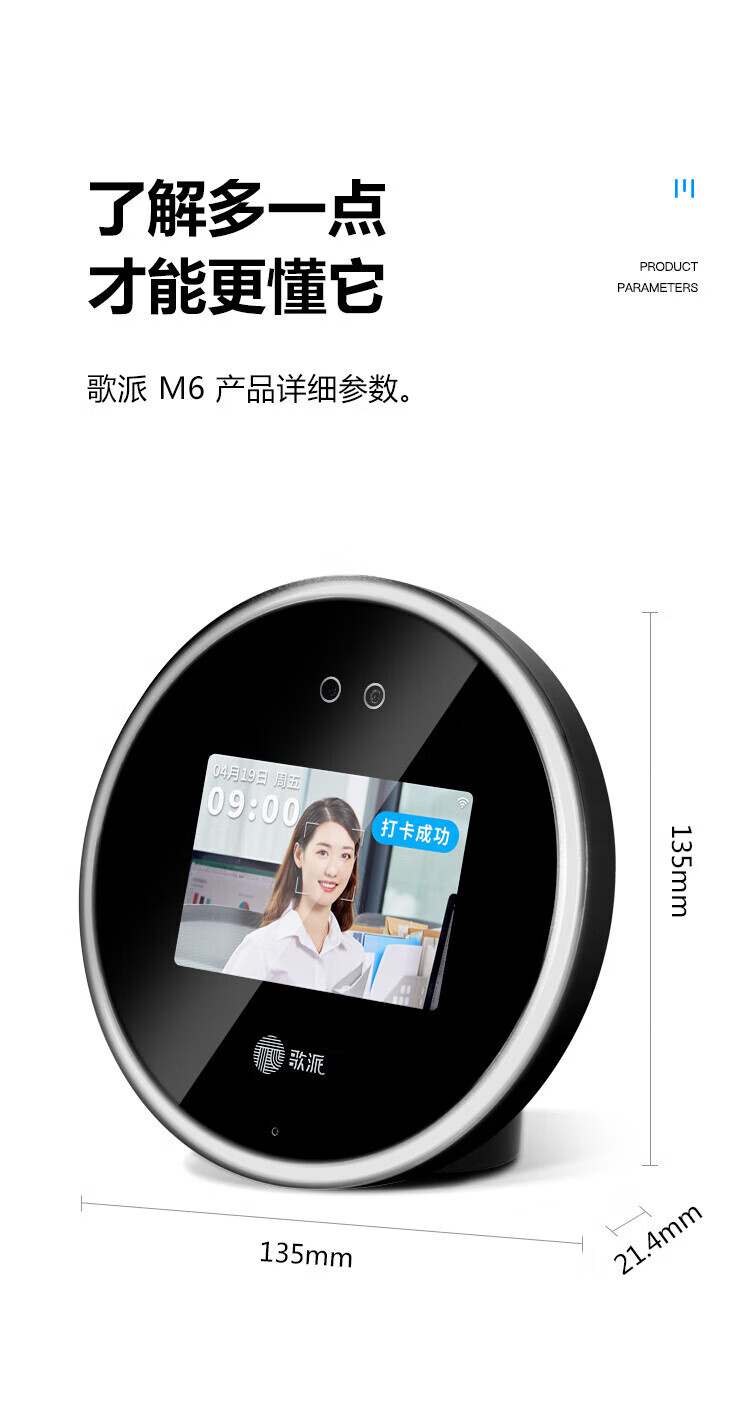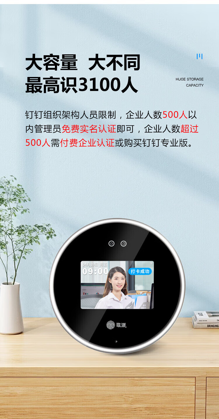 歌派M6钉钉版纯人脸考勤机 打卡签到机 面部识别 无线WIFI通讯, 智能云考勤