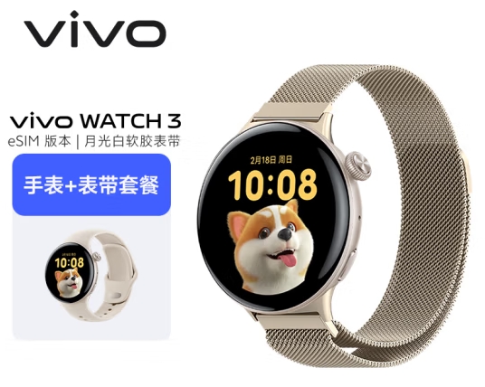 vivo WATCH 3 月光白 软胶+星光色米兰尼斯表带 eSIM版
