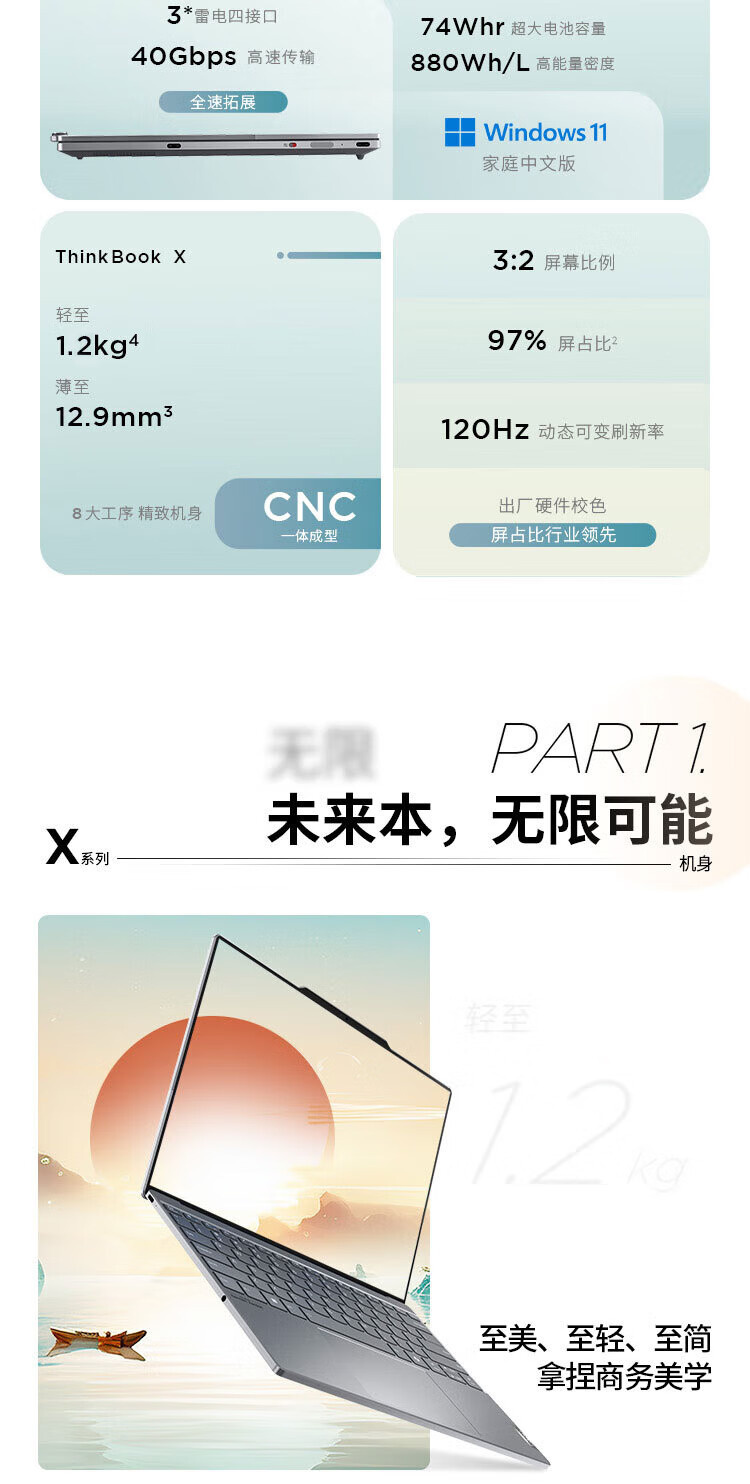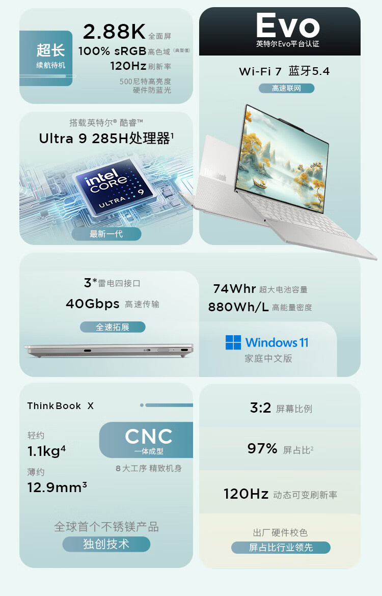 Thinkbook X 05CD(UItra9-285H/32G/1T/不锈镁金色/2.8K屏/13.5寸)