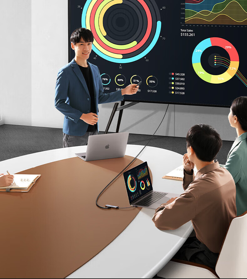 绿联 CM498 Type-C 转 3xUSB-A 3.0 + HDMI + VGA + RJ45(千兆)+ SD/TF + PD 九合一扩展坞 深空灰1.5米 25360