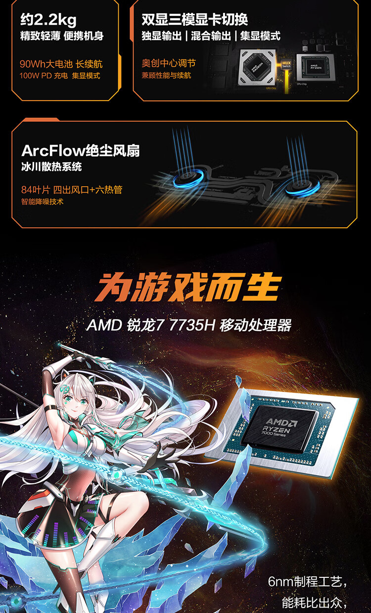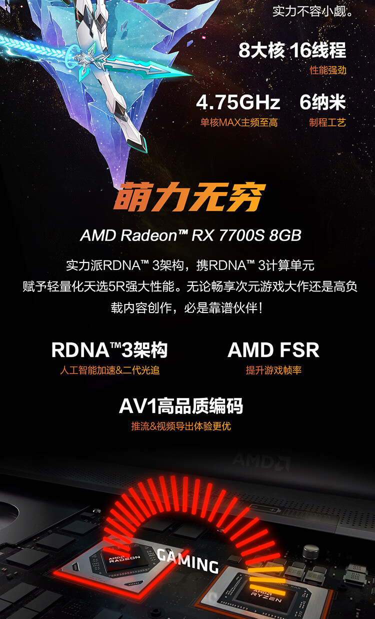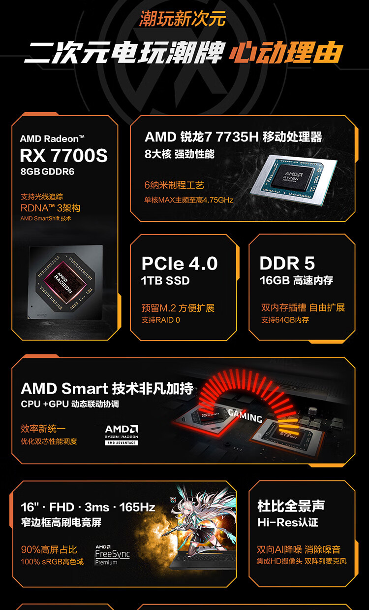 天选5R FA617NT7735 165Hz/R7-7735H/16G/1T/RX7700-8G/ 高色域电竞屏 日蚀灰