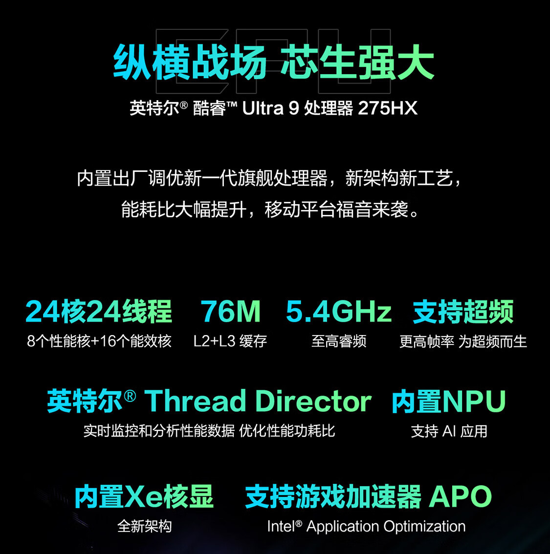 | CPU型号 | Intel Core Ultra 9 275 HX |