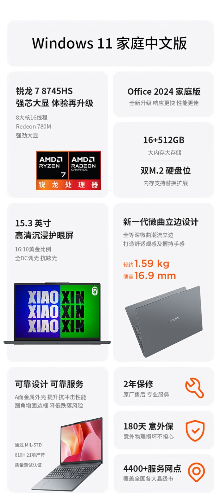 小新 15C-2025(R7-8745H/16G/512G/集成显卡/W11)