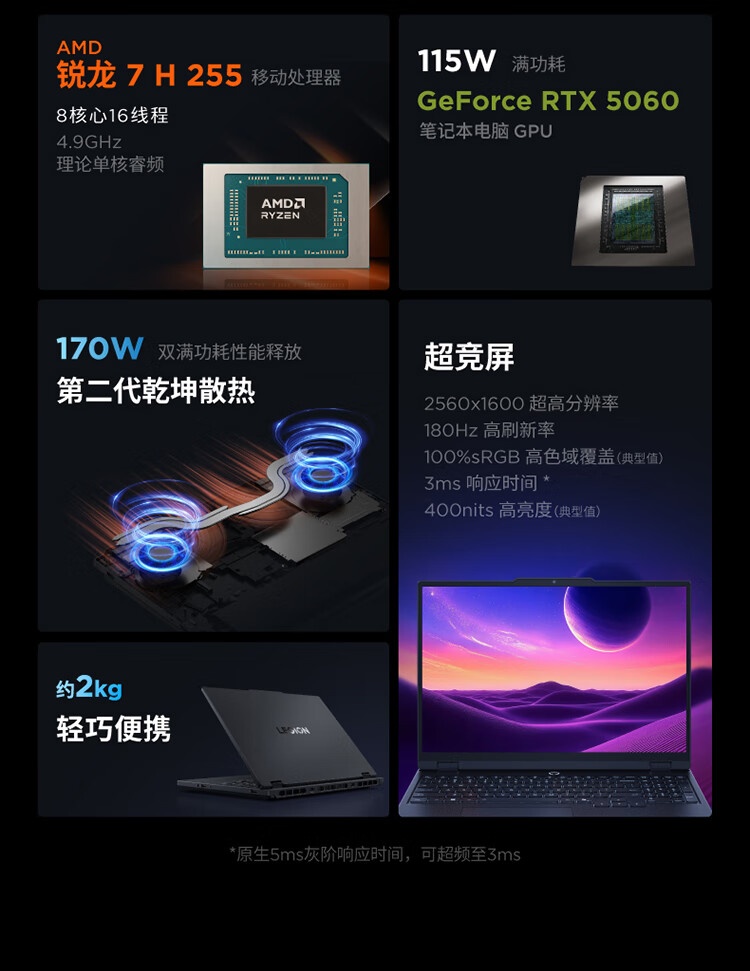 拯救者R7000-2025(R7-H255/16G/512G/RTX5050/2.5K/黑)