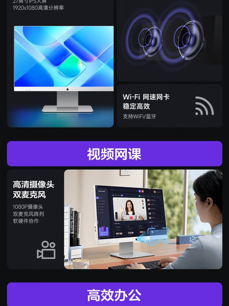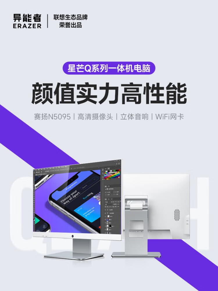 联想 异能者 Q270H(R5-5600H/16G/512GSSD/集成27寸黑/带摄像头)一体机