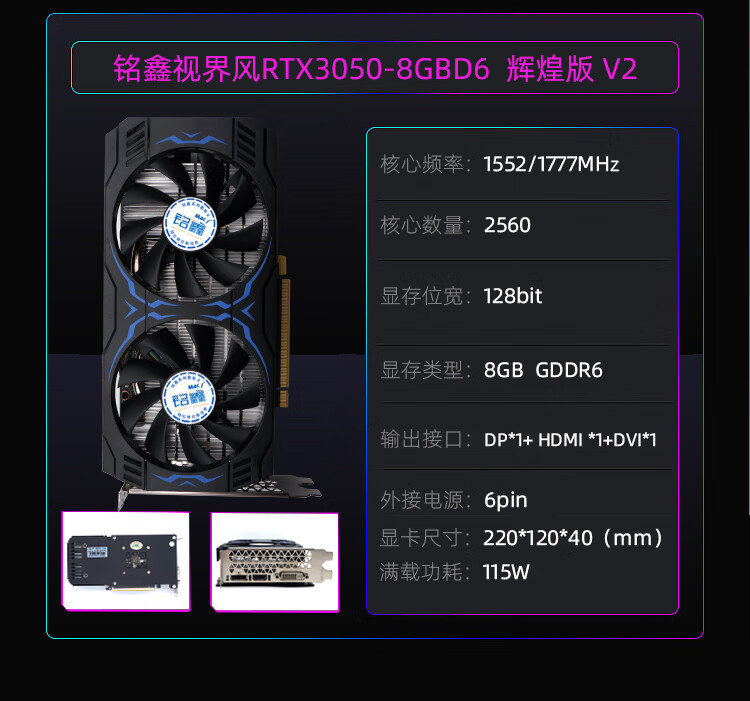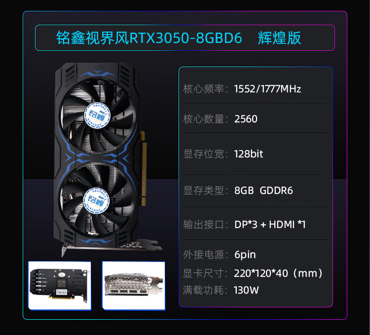 铭鑫RTX3050 8G D6 辉煌版 双扇