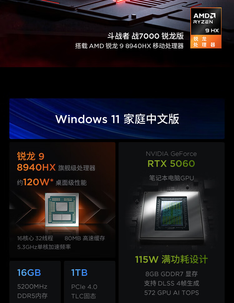 来酷 战7000(R9-8945HX/32G/1T/RTX5070/灰 2.5K 2025)
