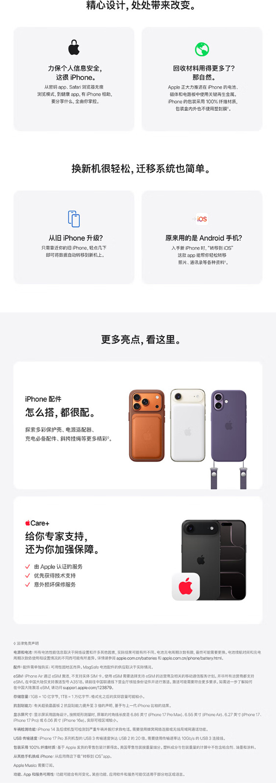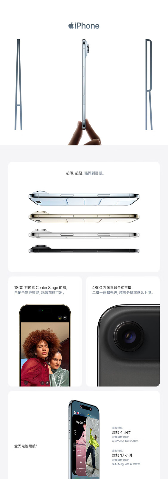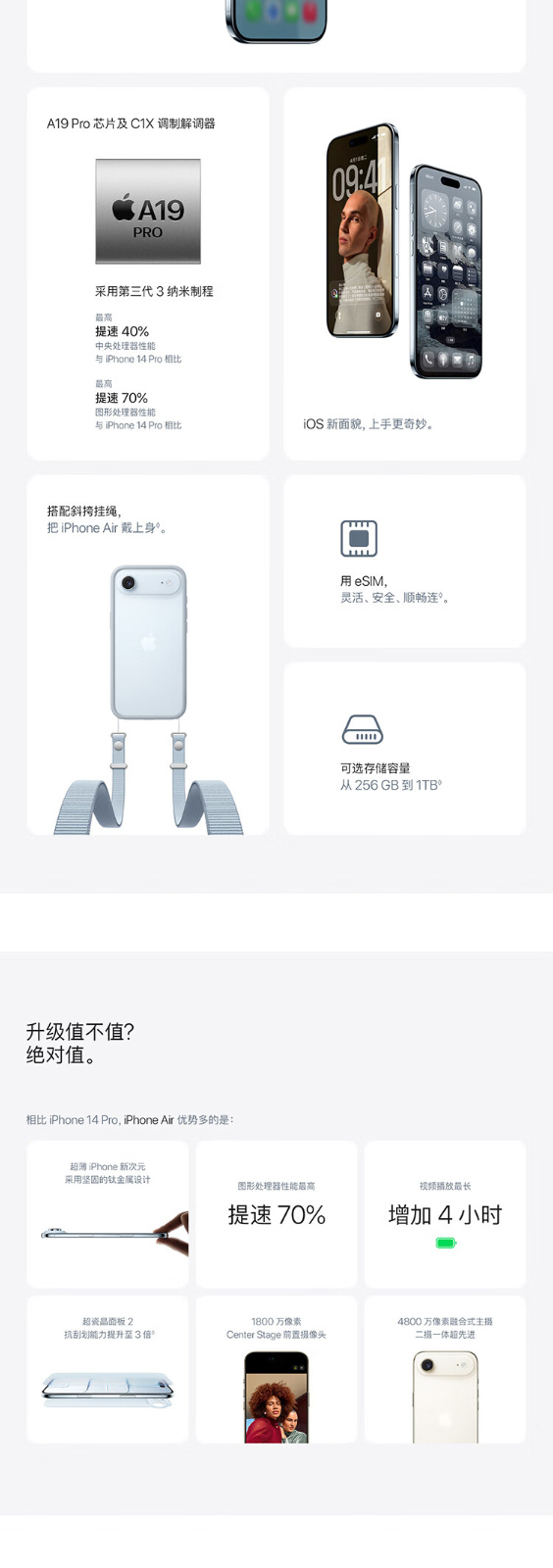 A19 Pro/6.5英寸/ 仅支持eSIM/仅中国联通为本产品提供eSIM支持