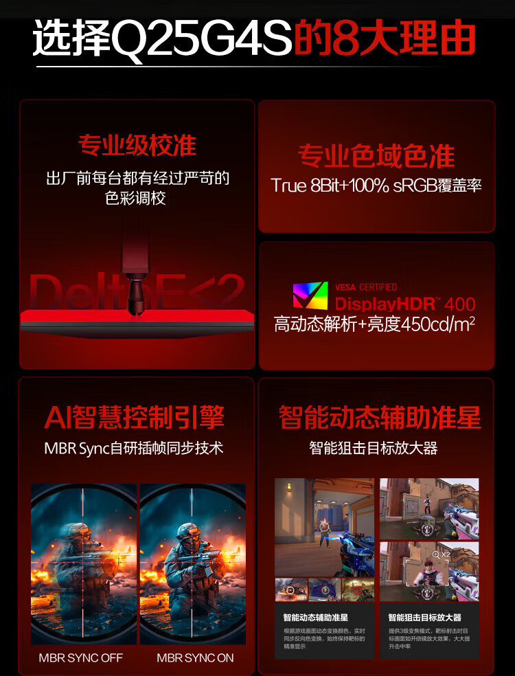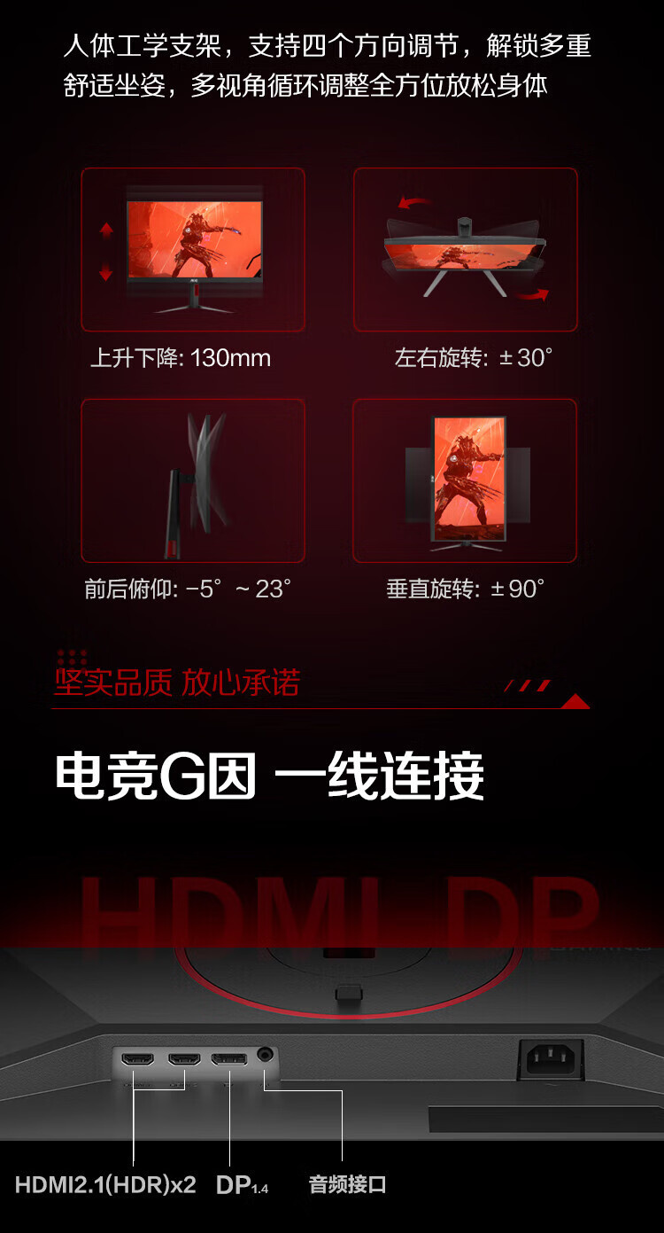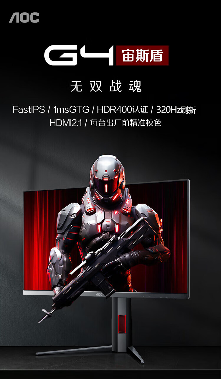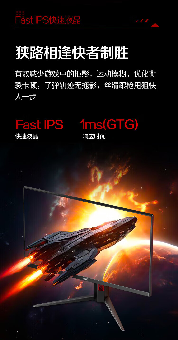 AOC Q25G4S 24.5英寸 Fast IPS 2K 300HZ HDR400 升降旋转 显示器