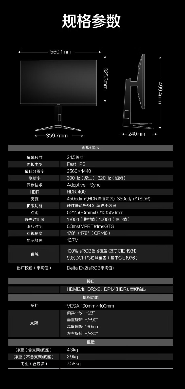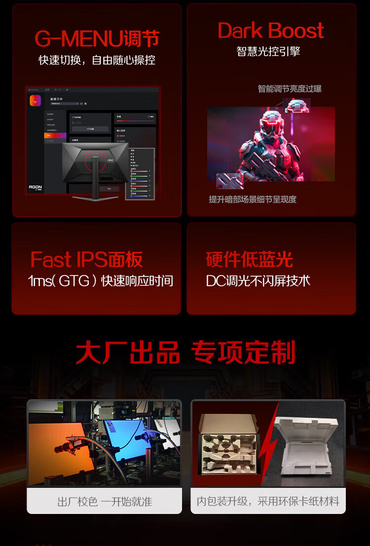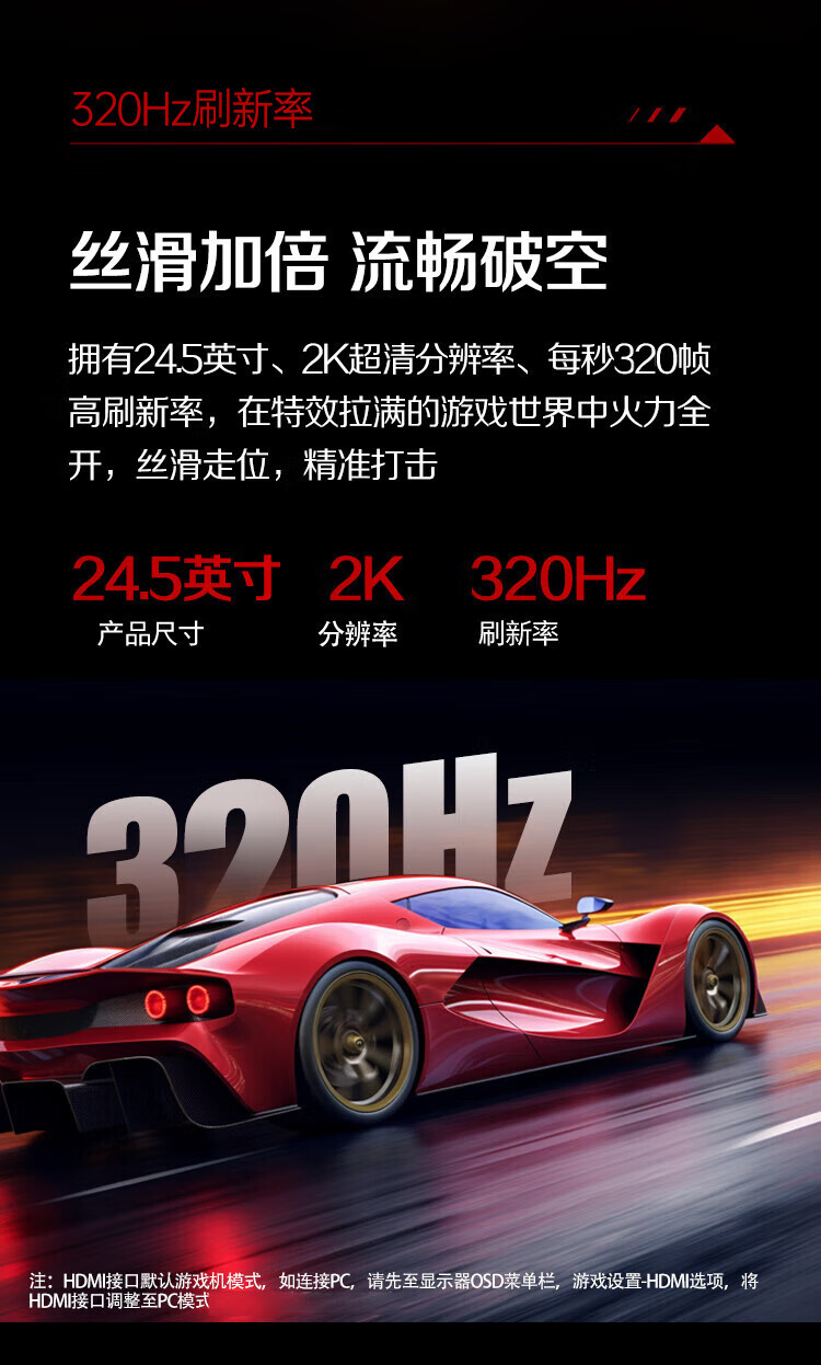 原生300hz超频320Hz FastIPS 1ms HDR400 出厂校色 硬件低蓝光 游戏电竞显示器