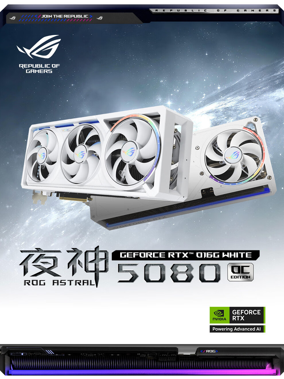华硕 ROG-ASTRAL-RTX5080-O16G-WHITE 夜神四风扇白色
