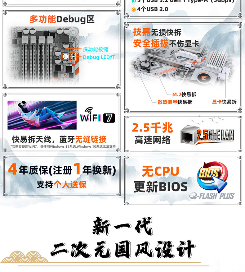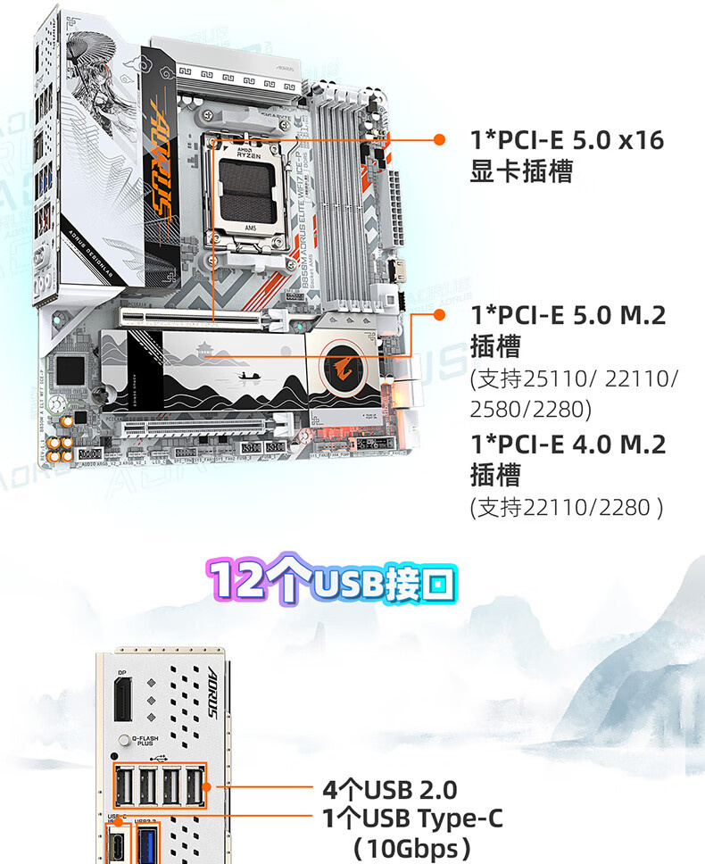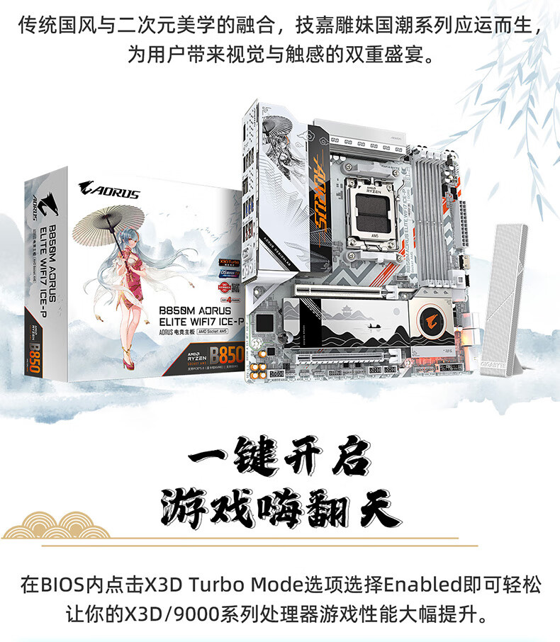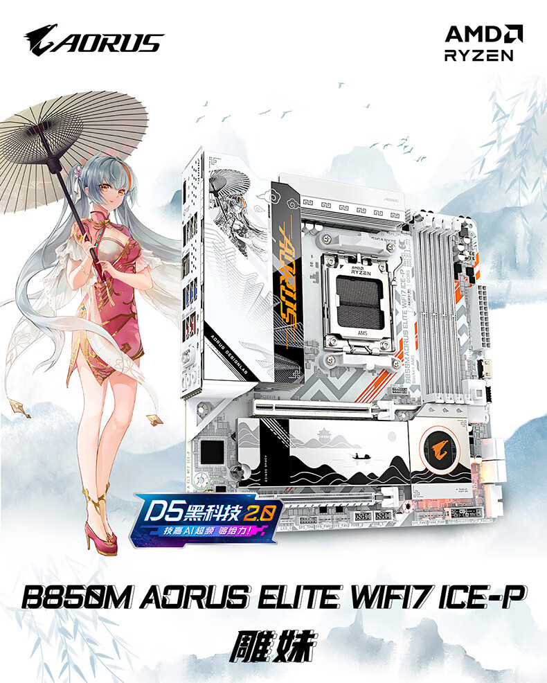 技嘉 雕妹 B850M AORUS ELITE WIFI7 ICE-P主板