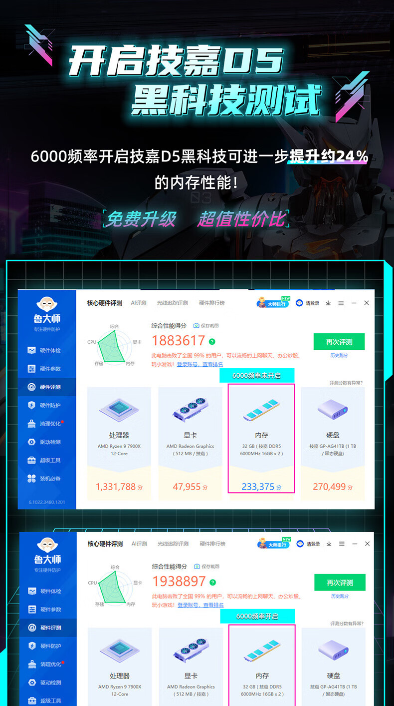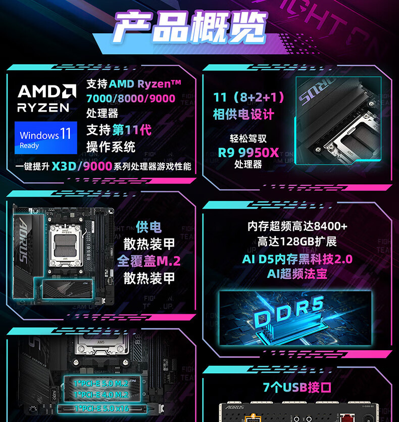 DDR5支持AMD CPU AM5 7950X3D/7900X3D/7800X3D