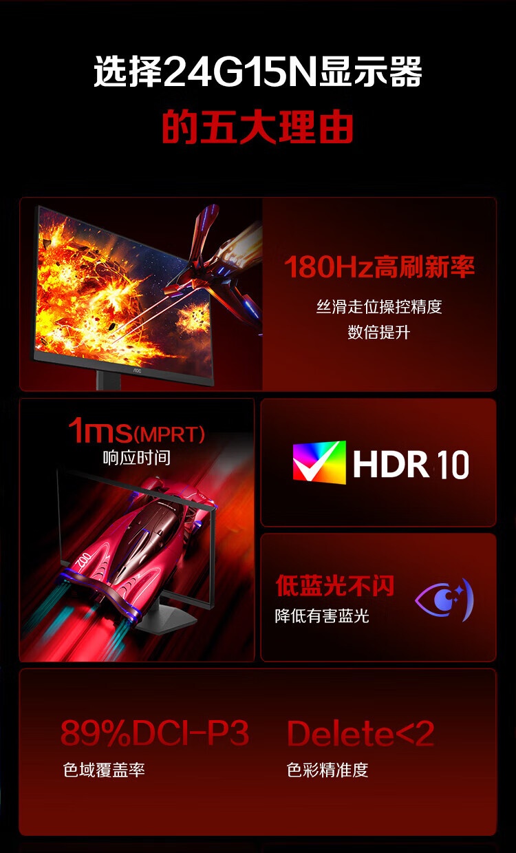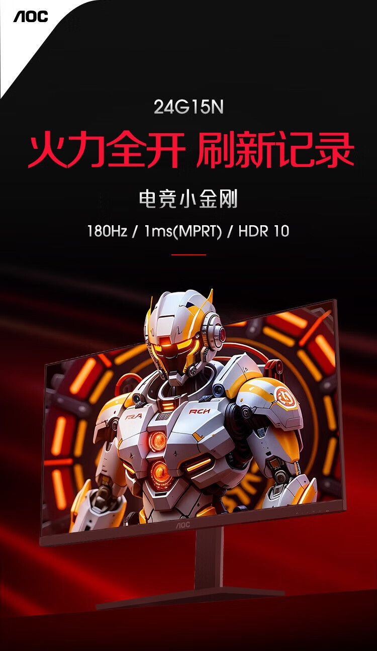 AOC 24G11E2 23.8英寸 Fast IPS 180Hz无升降 全高清电竞显示器