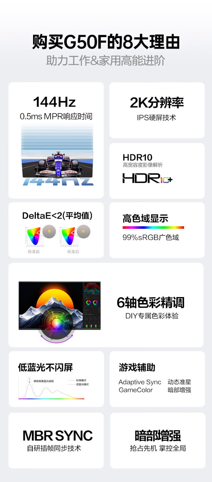 IPS技术 HDR 6轴调色 每台出厂校色 低蓝光台式电脑办公显示器显示屏