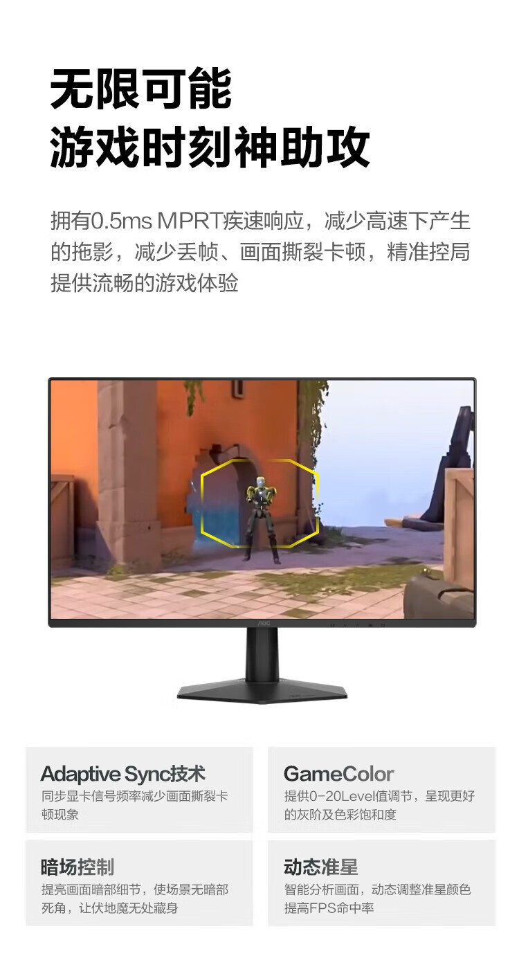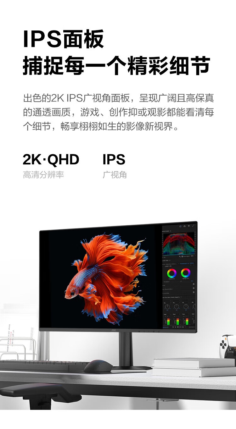 AOC Q27G50F 23.8英寸 IPS 直面2K 144HZ 高刷显示器