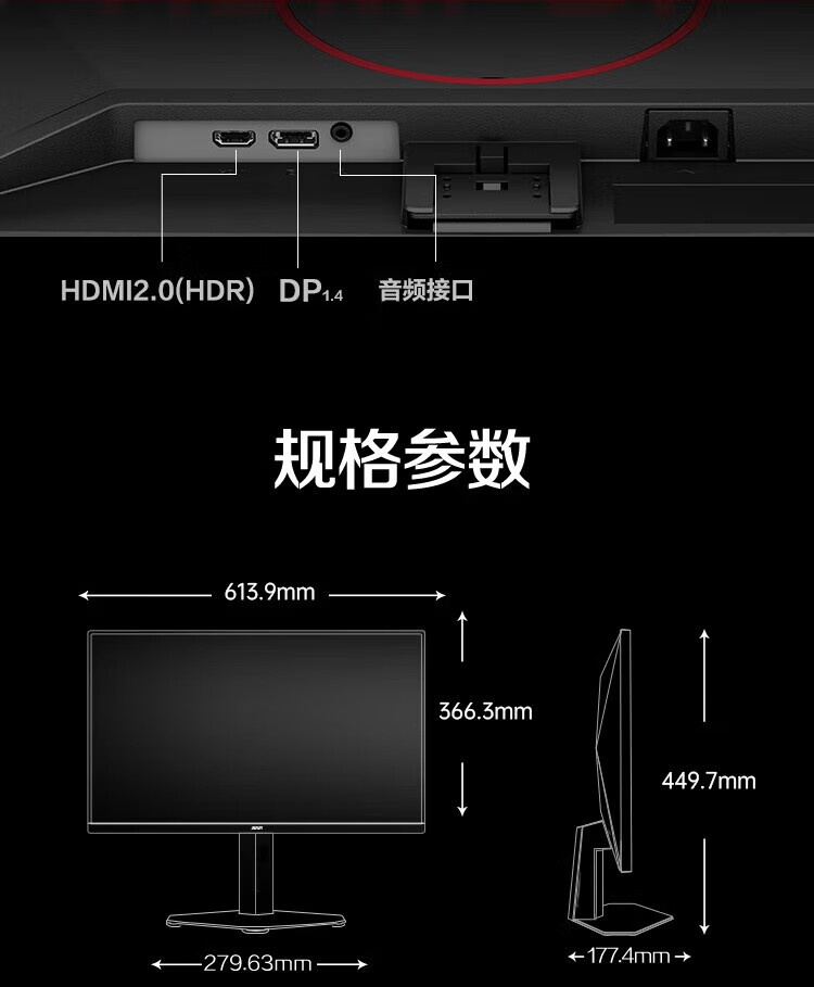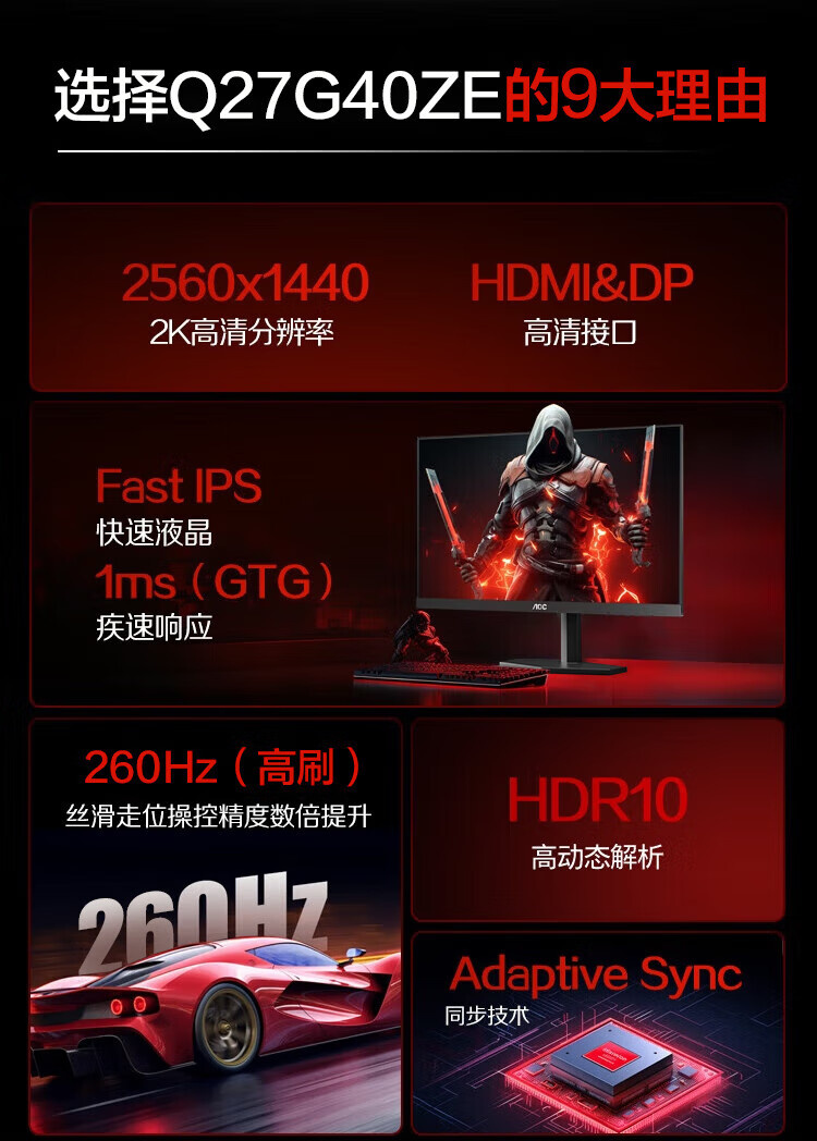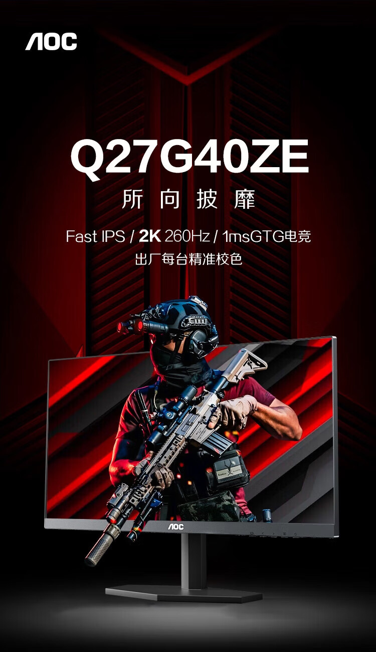 AOC Q27G40ZE IPS 27英寸 2K 260HZ HDR10 无升降 显示器