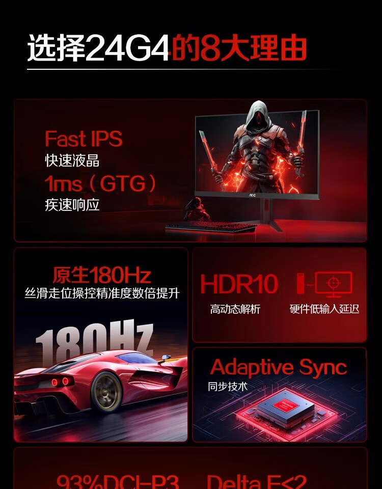 24英寸 IPS180HZ小金刚 2H1P DP 无升降硬件游戏电竞显示器