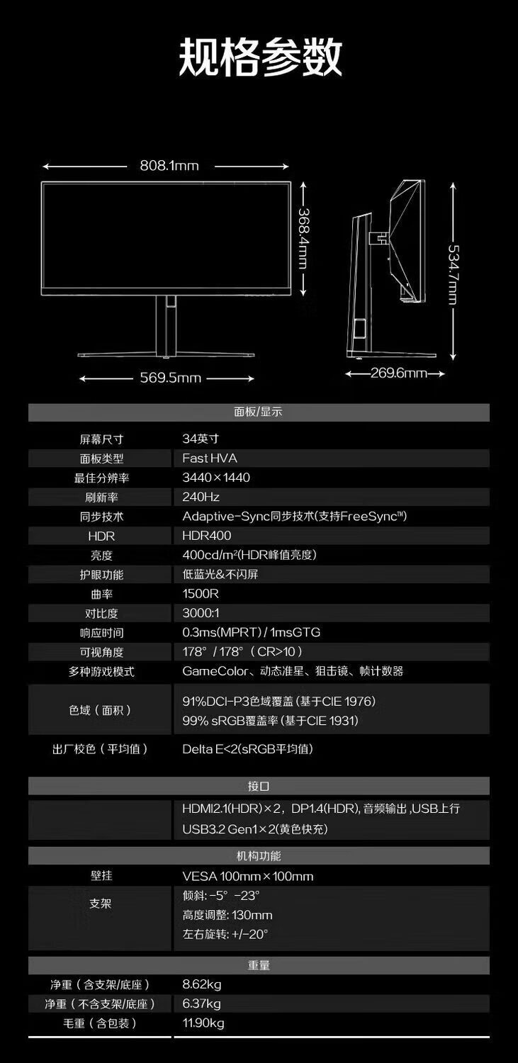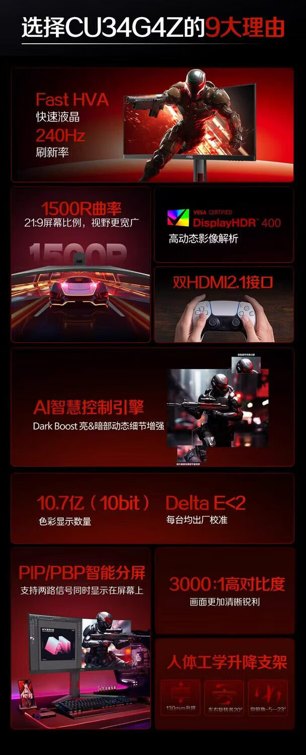 AOC CU34G4Z VA 1500R 21:9 3440*1440 240HZ
