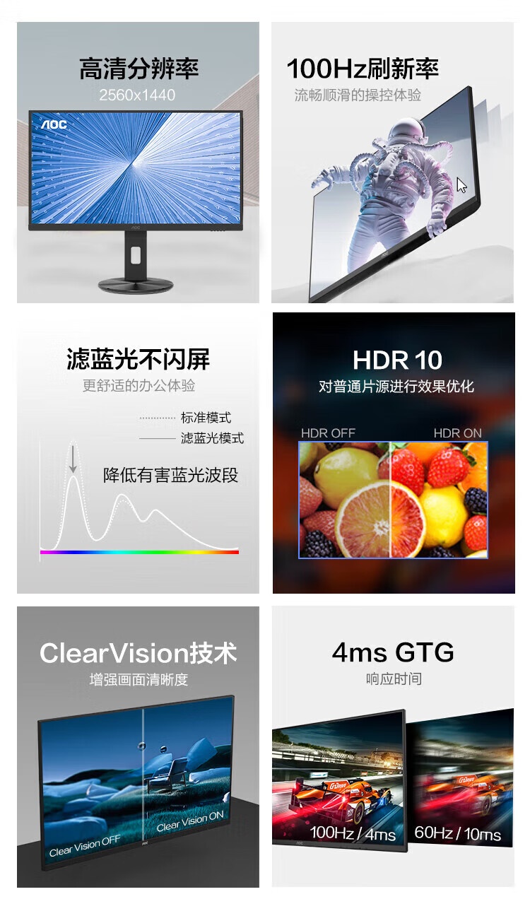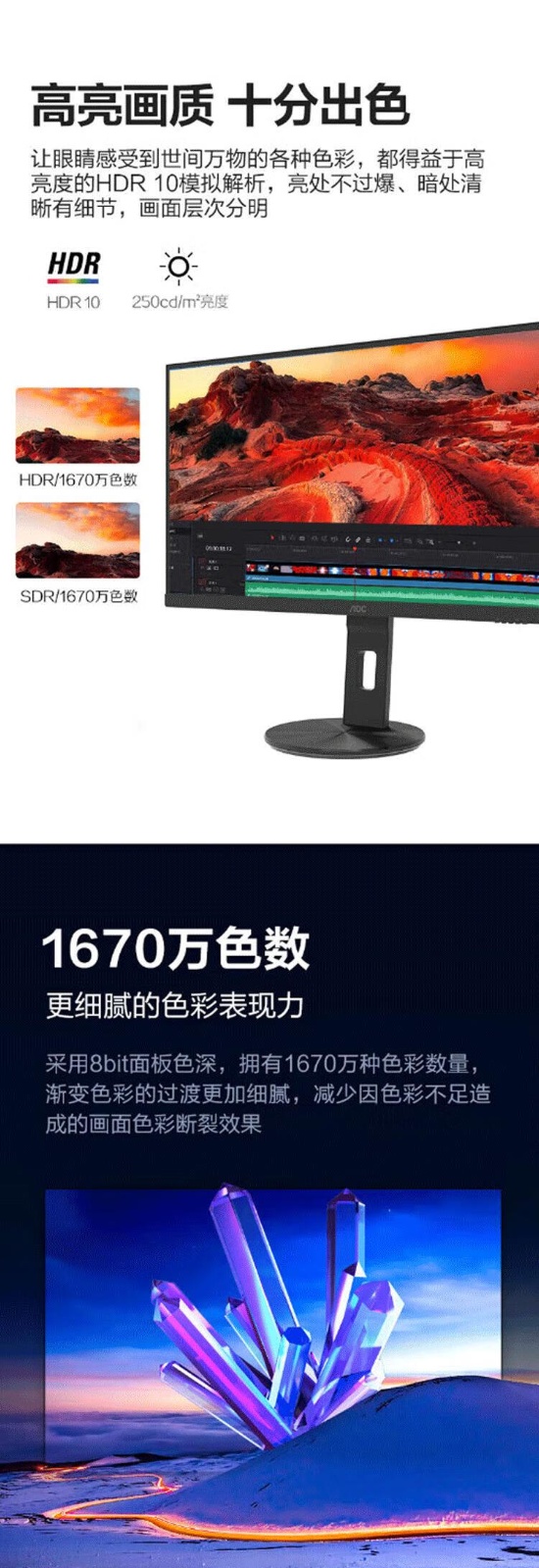高清 广视角 低蓝光不闪升降旋转HDR10家用娱乐办公显示器