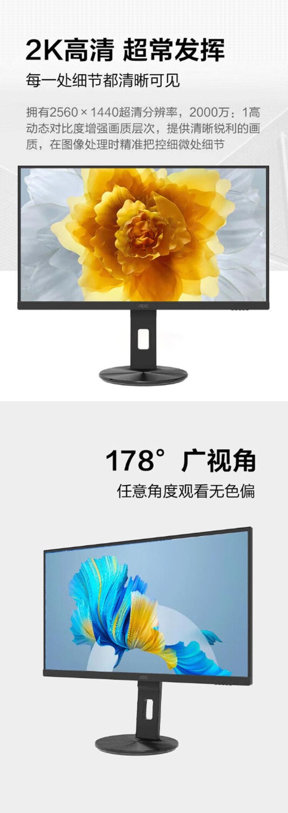 AOC Q27V10C IPS 27英寸 2K 100HZ Type-c 65W 显示器