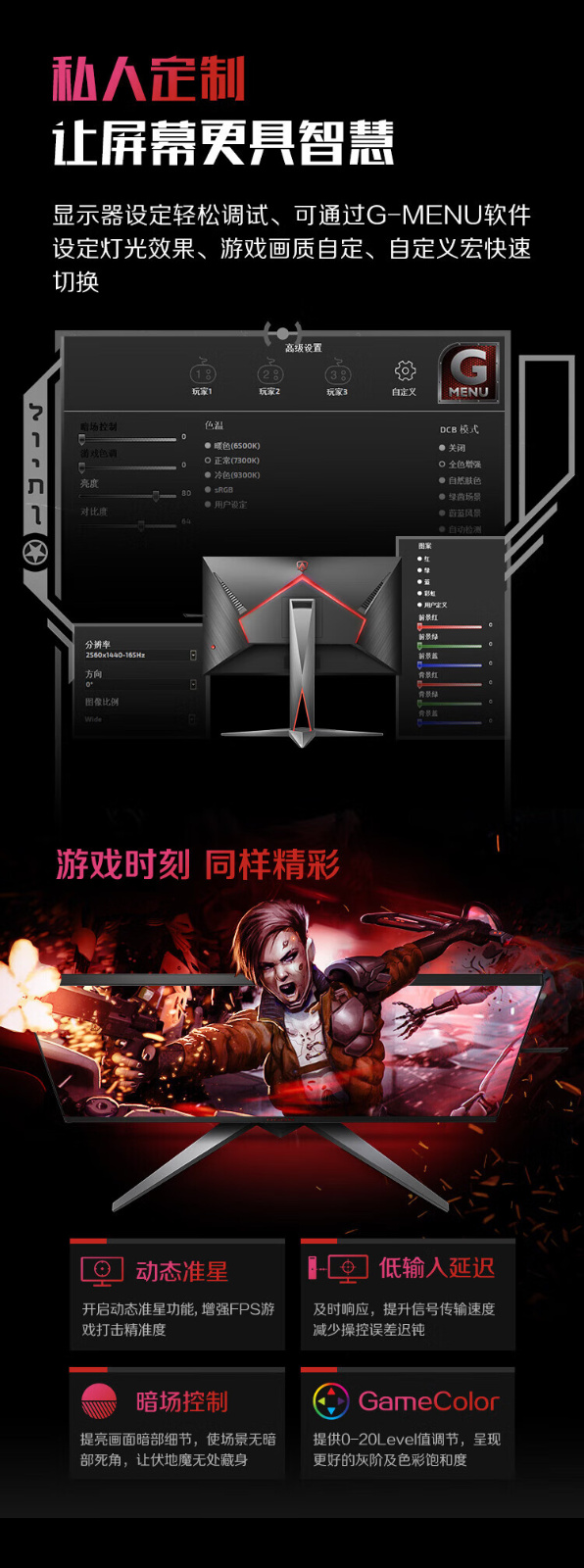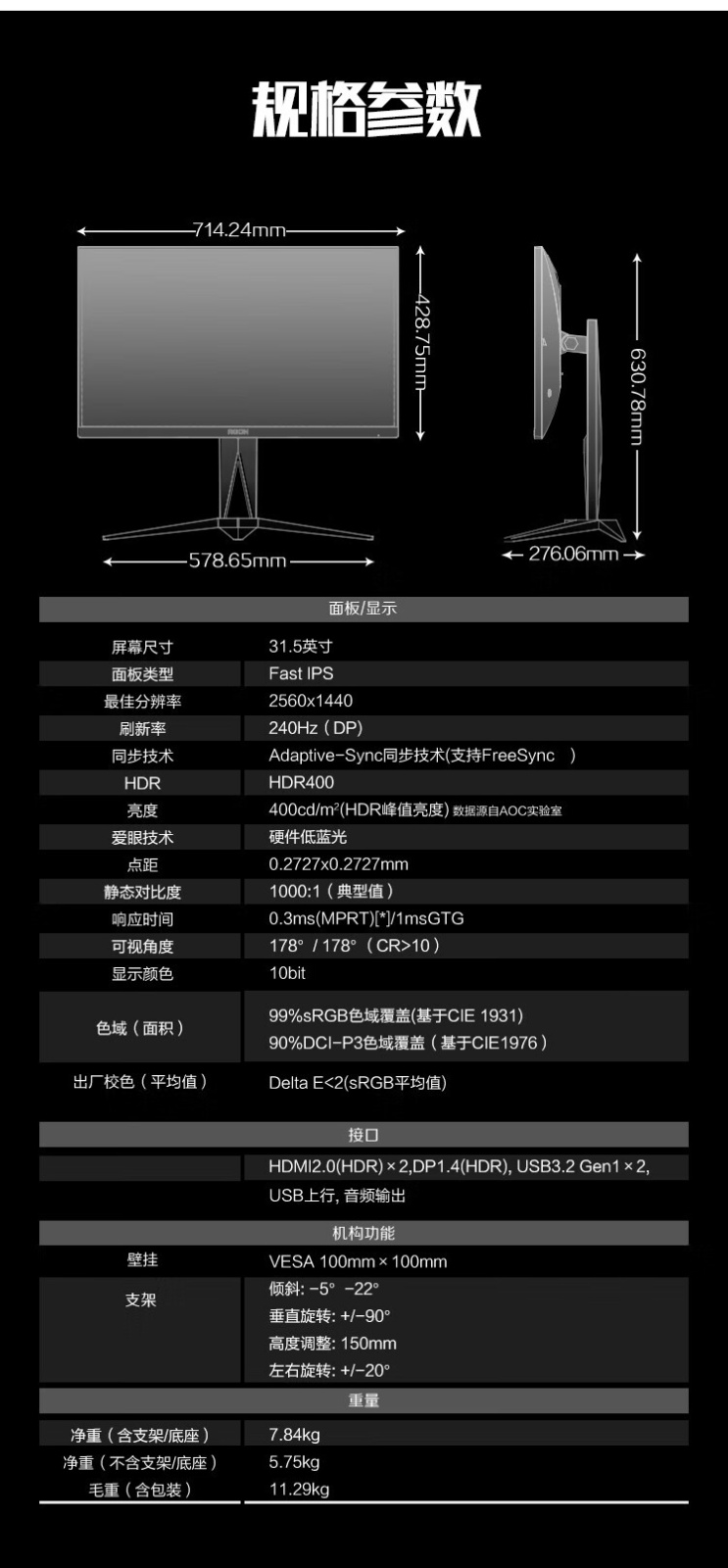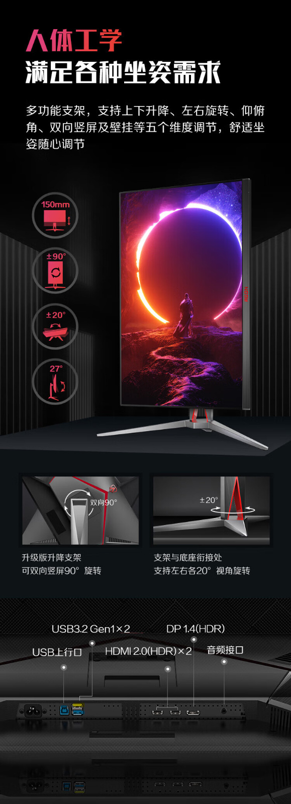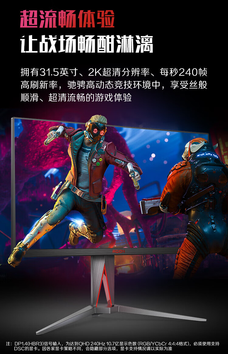 AOC AG325QZ 31.5寸 IPS 2K 240HZ HDR400升降旋转 电竞显示器
