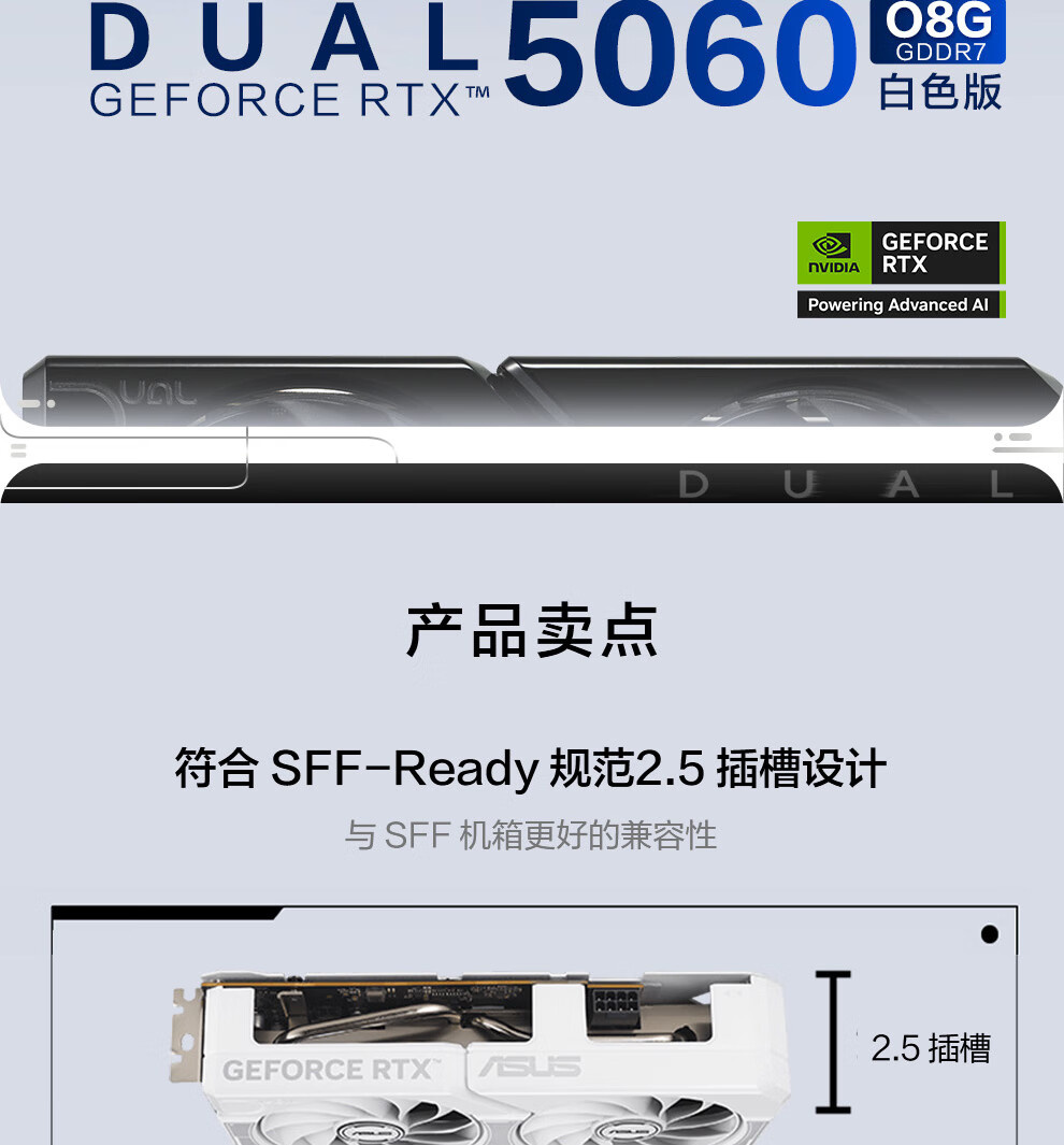 华硕 DUAL-RTX5060-O8G-WHITE 雪豹双风扇白色