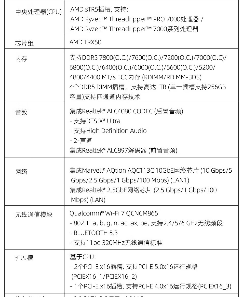 支持撕裂者 PRO 7000处理器 3个PCI-E接口