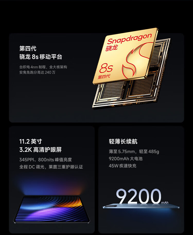 11.2英寸 3.2K 超清屏 第四代骁龙8s 澎湃OS3