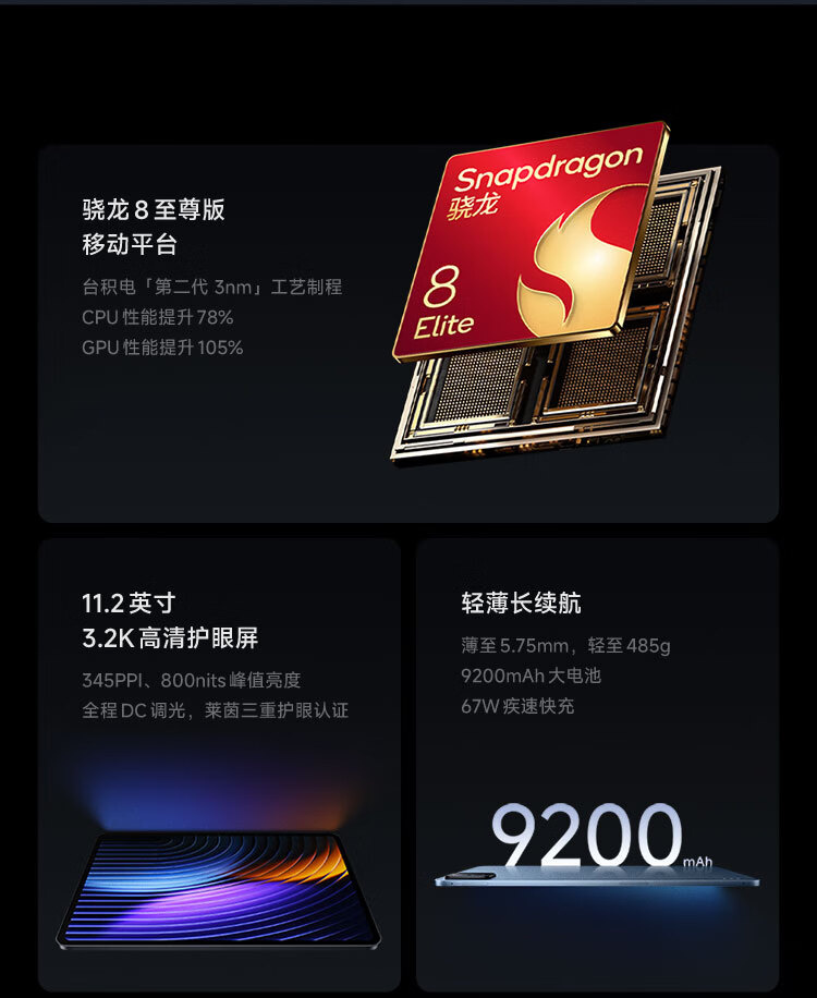 11.2英寸 3.2K 超清屏 骁龙8 至尊 澎湃OS3