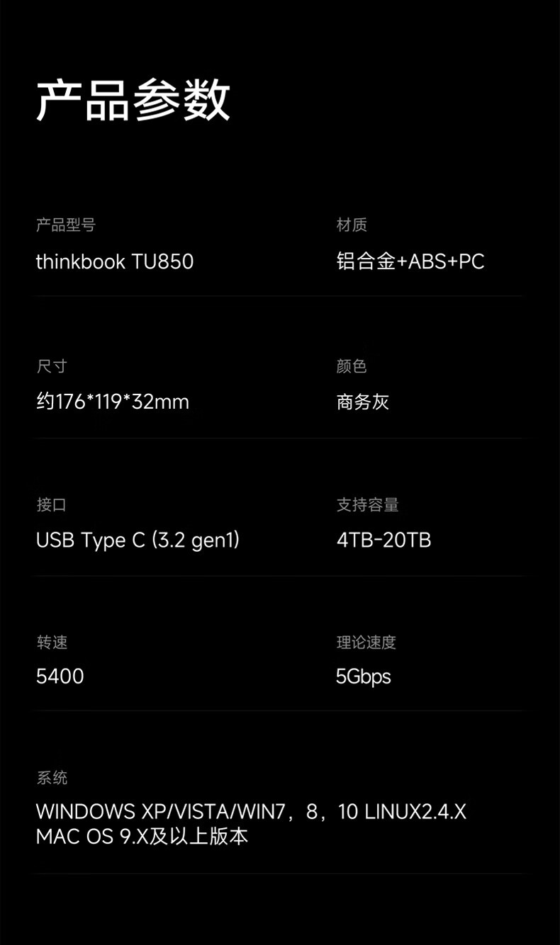 Think TU850 3.5英寸 Type-C USB3.2 6T