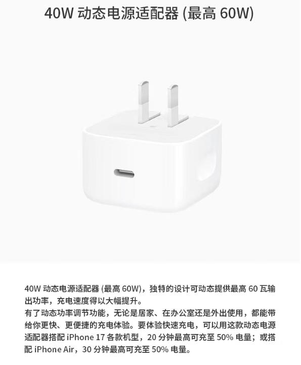 原装充电器电源适配器 适用于iPhone 17 系列 白色