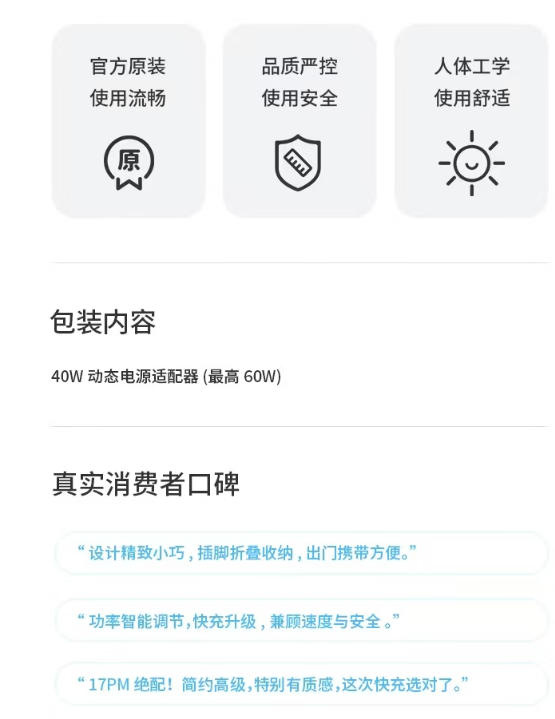 Apple/苹果 40W USB-C 手机充电器 手机快充头