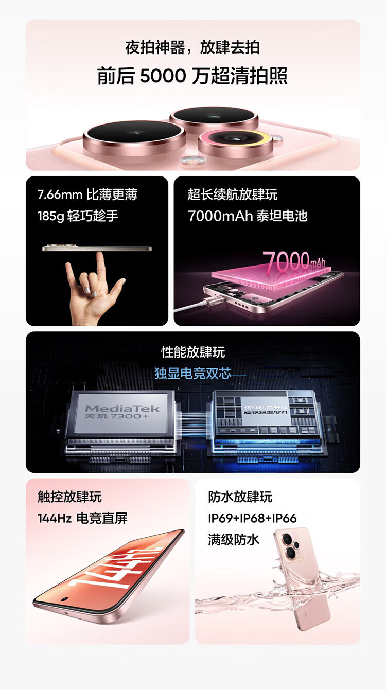 前后5000万超清拍摄 7000mAh超长续航 IP69满级防水