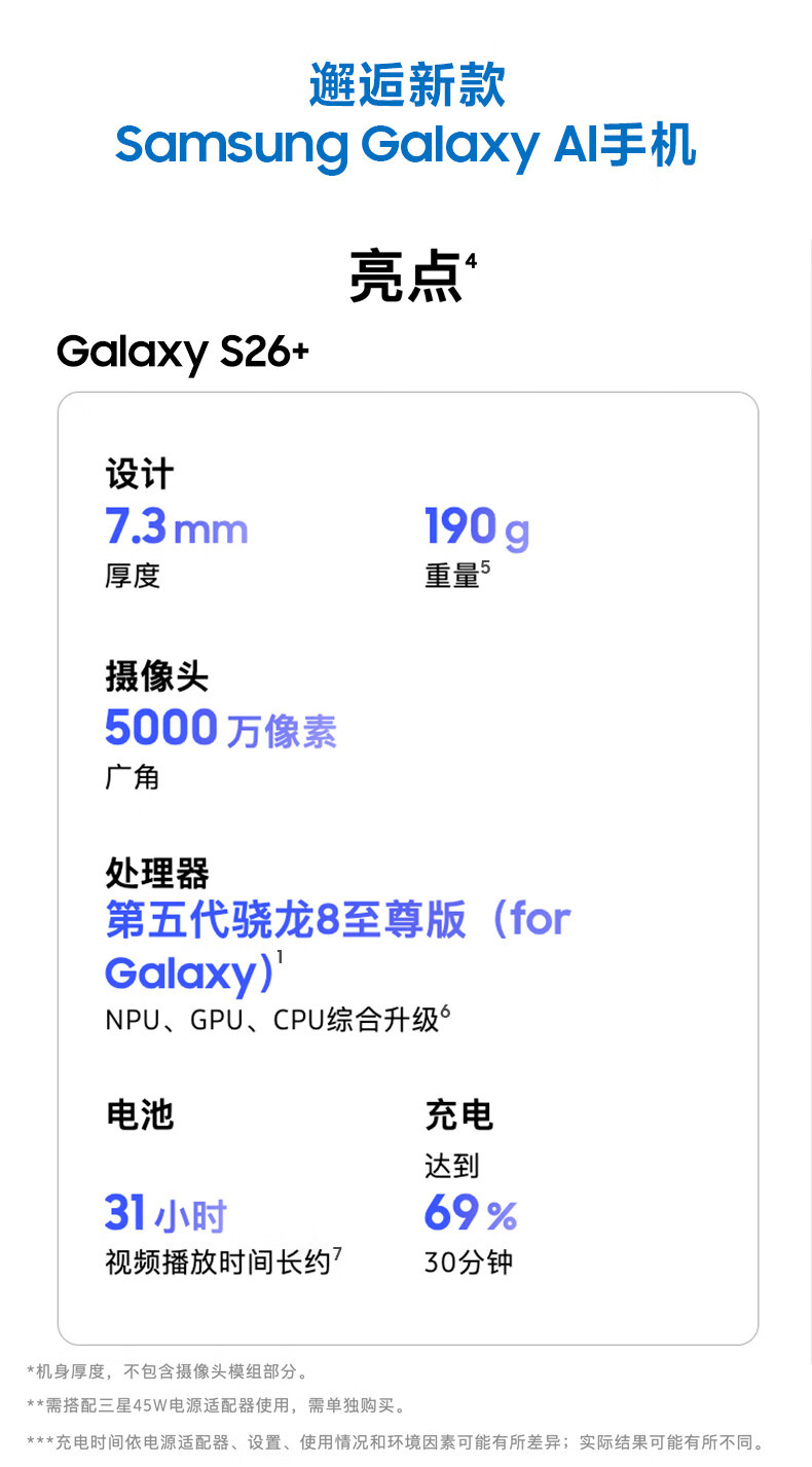 三星 S26(S9420) 12G+256G 旷宇黑 原封