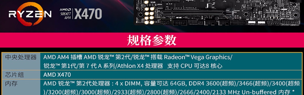 | 主芯片组 | AMD X470 |