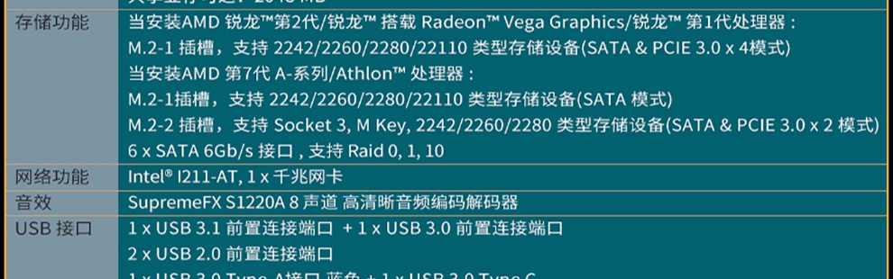 | CPU类型 | AMD Ryzen/第7代A系列/Athlon II/Athlon |